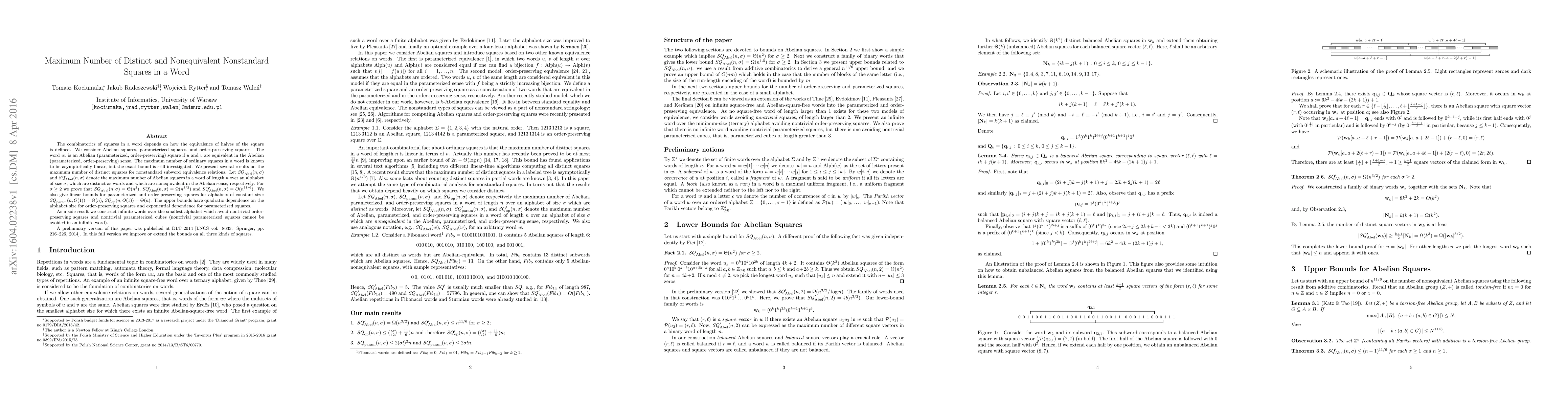 This paper investigates the maximum number of distinct nonequivalent nonstandard squares in a word under different equivalence relations, proving bounds for Abelian, parameterized, and order-preserving squares. It finds $\mathit{SQ}_{\mathrm{Abel}}(n,\sigma)=\Theta(n^2)$ and provides linear bounds for parameterized and order-preserving squares for constant alphabet sizes.