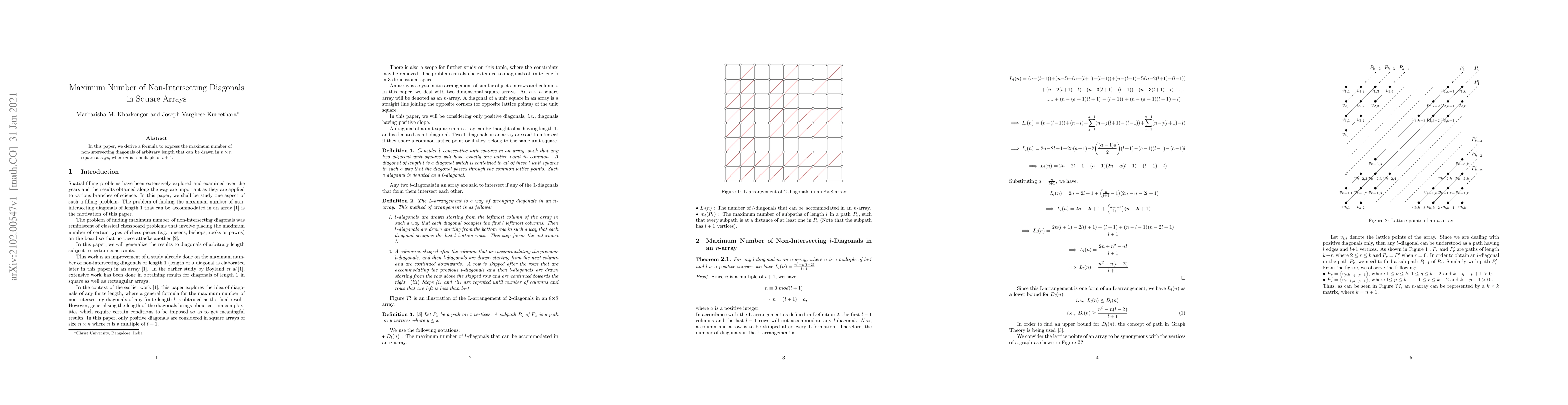 In this paper, we derive a formula to express the maximum number of non-intersecting diagonals of arbitrary length that can be drawn in n x n square arrays, where n is a multiple of l+1.