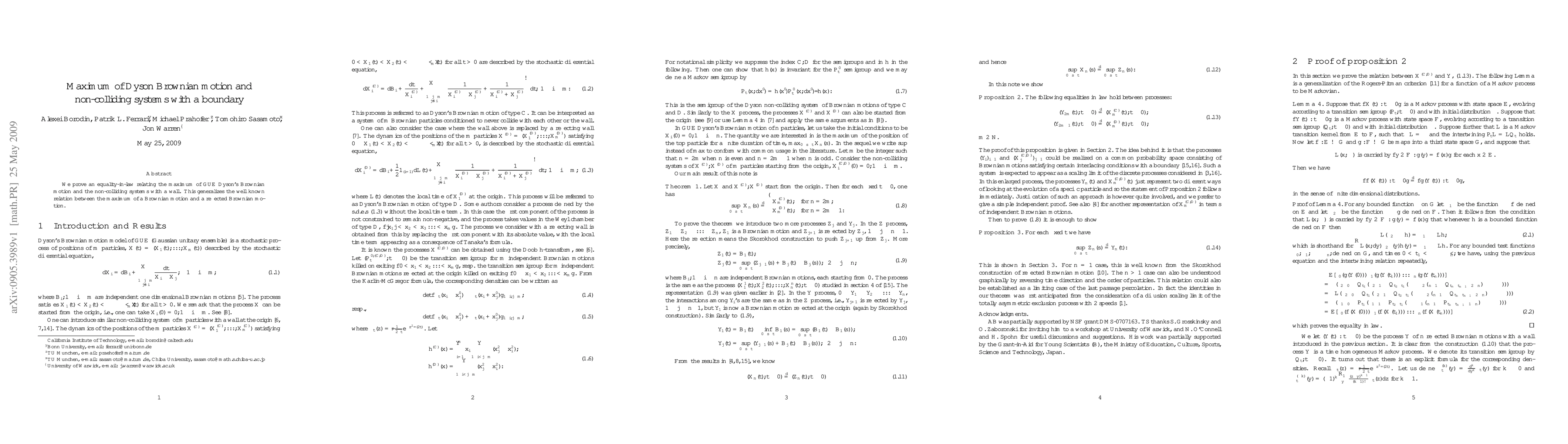 Summary: This paper establishes an equality-in-law between the maximum of GUE Dyson Brownian motion and non-colliding systems with a boundary, extending the known relation between the maximum of a standard Brownian motion and a reflected Brownian motion.