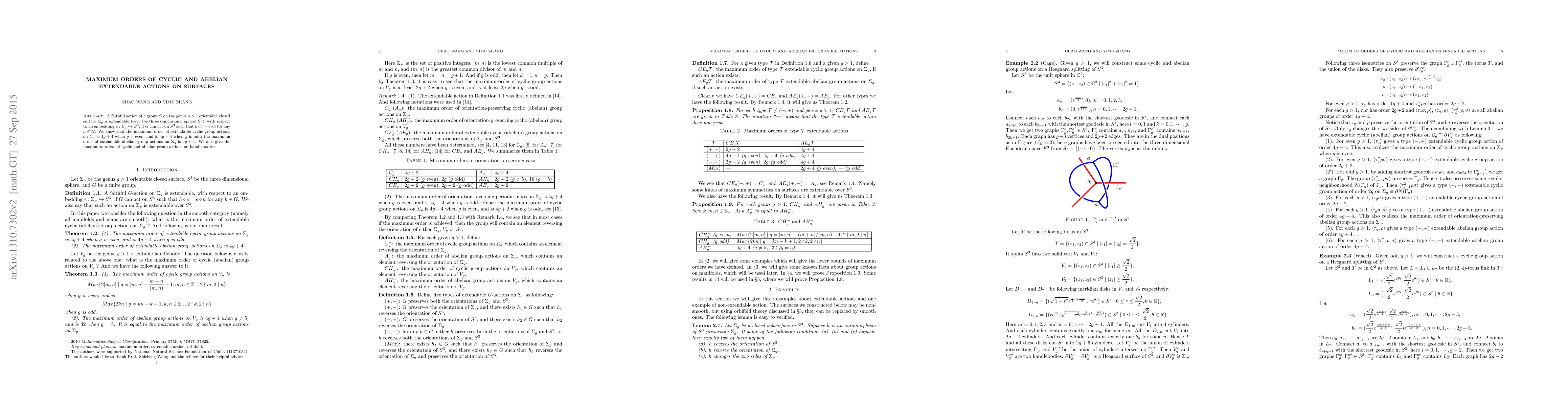 The research determines the maximum possible sizes of cyclic and abelian groups that can act on surfaces embedded in three-dimensional space, with the largest cyclic group size depending on the surface's genus. These findings help understand how symmetries extend from surfaces to the surrounding space.