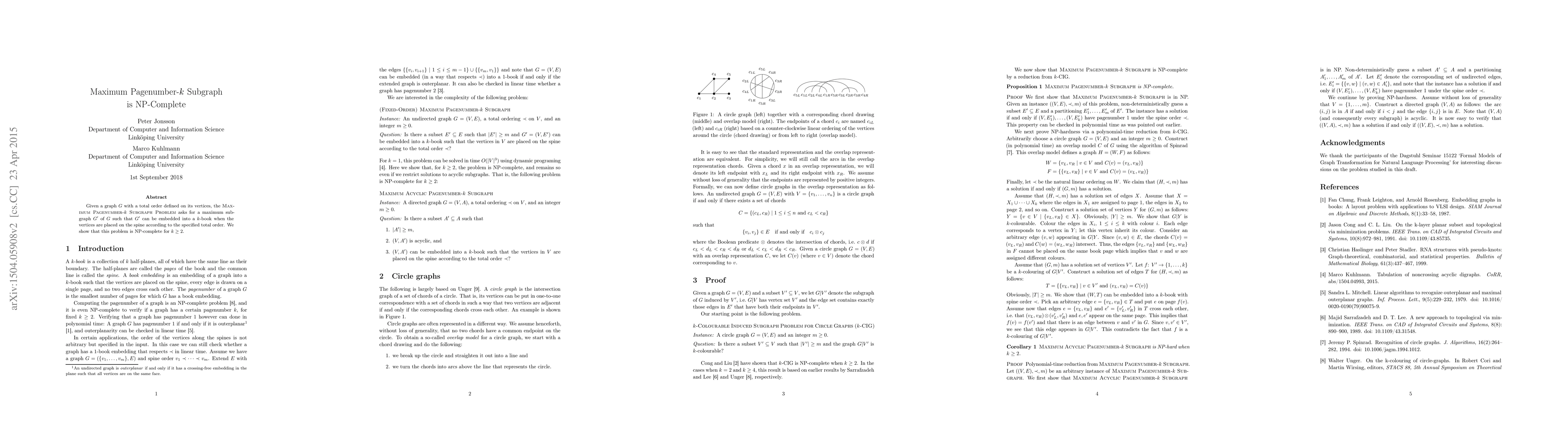 Researchers prove that finding a maximum subgraph in a graph with a total order can't be solved efficiently for k=2 or more books, showing it's NP-complete.