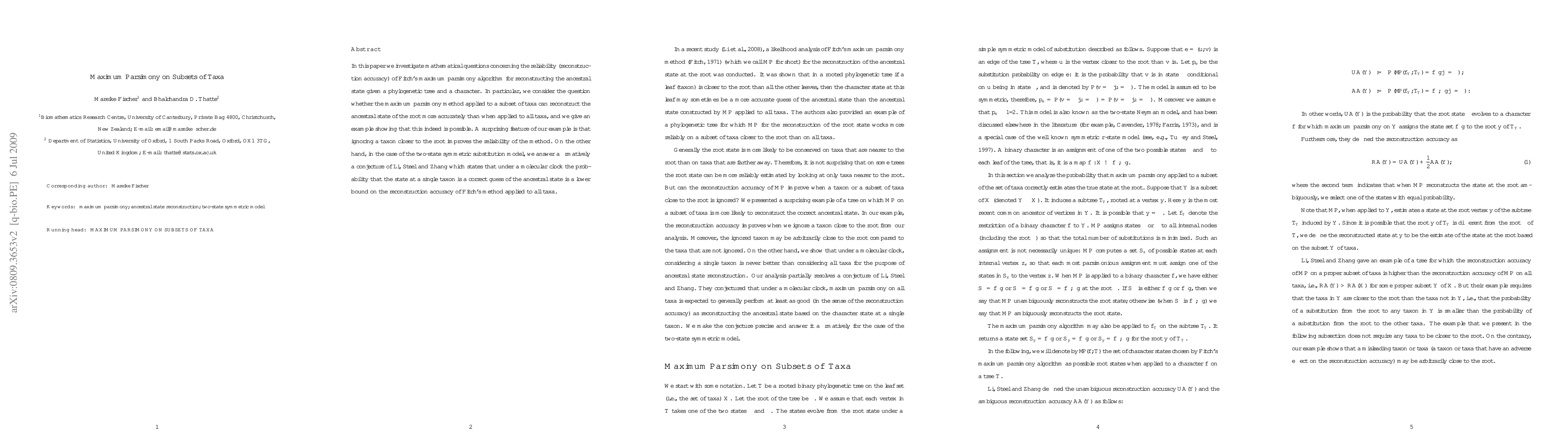 This paper explores the reliability of Fitch's maximum parsimony algorithm in reconstructing ancestral states, finding that applying the method to a subset of taxa can sometimes yield more accurate results than using all taxa. It also confirms a conjecture regarding the lower bound of reconstruction accuracy under a molecular clock model.