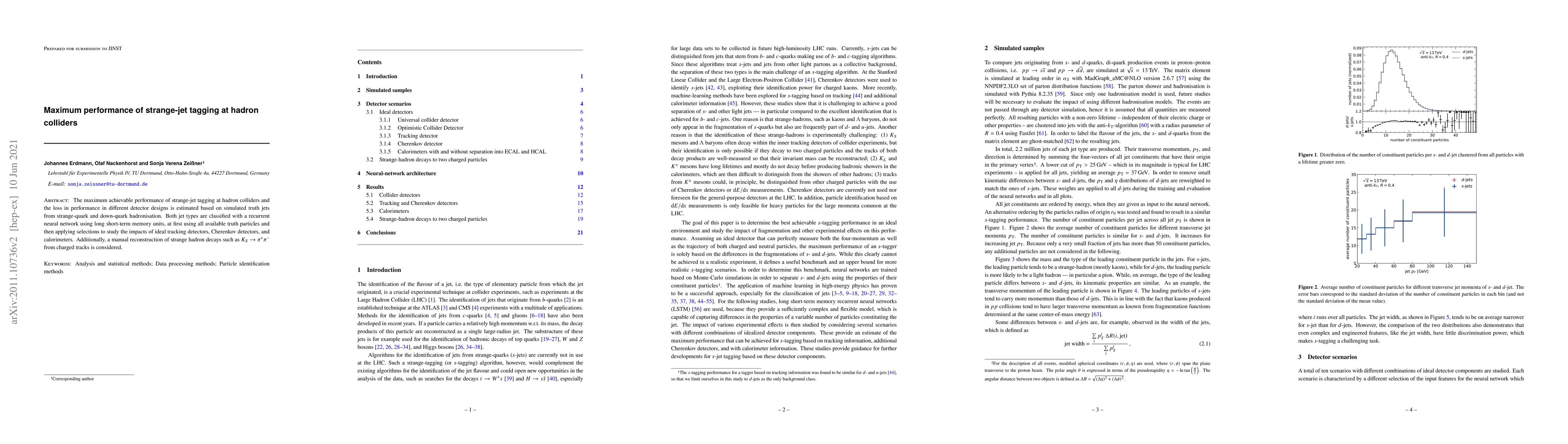 This study estimates the maximum performance of tagging strange-jets at hadron colliders using a recurrent neural network, evaluating the impact of different detector designs on this performance. It also considers manual reconstruction methods for strange hadron decays.