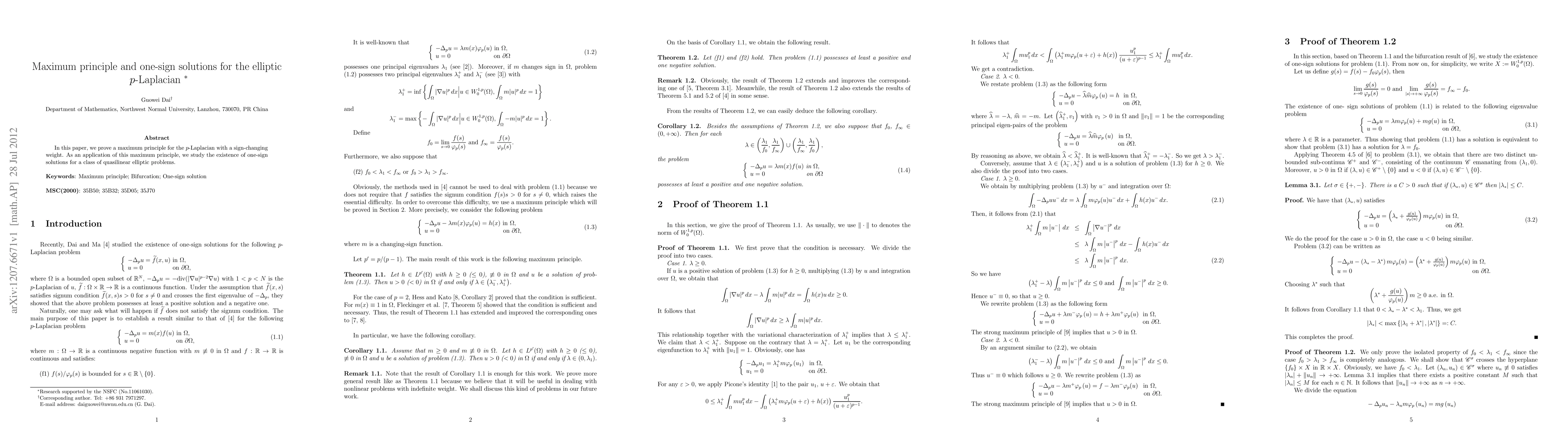 This paper establishes a maximum principle for the $p$-Laplacian with a sign-changing weight, and applies this principle to demonstrate the existence of one-sign solutions for a class of quasilinear elliptic problems.