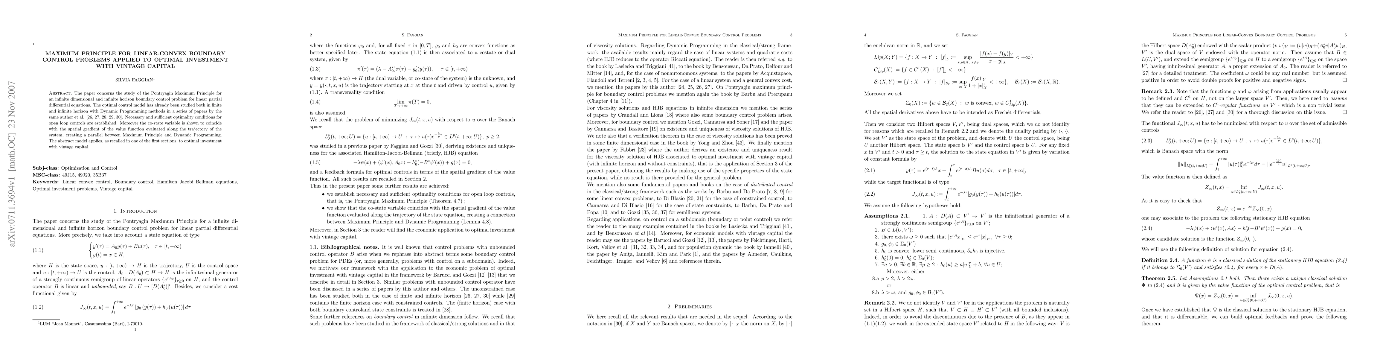 The paper concerns the study of the Pontryagin Maximum Principle for an infinite dimensional and infinite horizon boundary control problem for linear partial differential equations. The optimal control model has already been studied both in finite and infinite horizon with Dynamic Programming methods in a series of papers by the same author, or by Faggian and Gozzi. Necessary and sufficient optimality conditions for open loop controls are established. Moreover the co-state variable is shown to coincide with the spatial gradient of the value function evaluated along the trajectory of the system, creating a parallel between Maximum Principle and Dynamic Programming. The abstract model applies, as recalled in one of the first sections, to optimal investment with vintage capital.