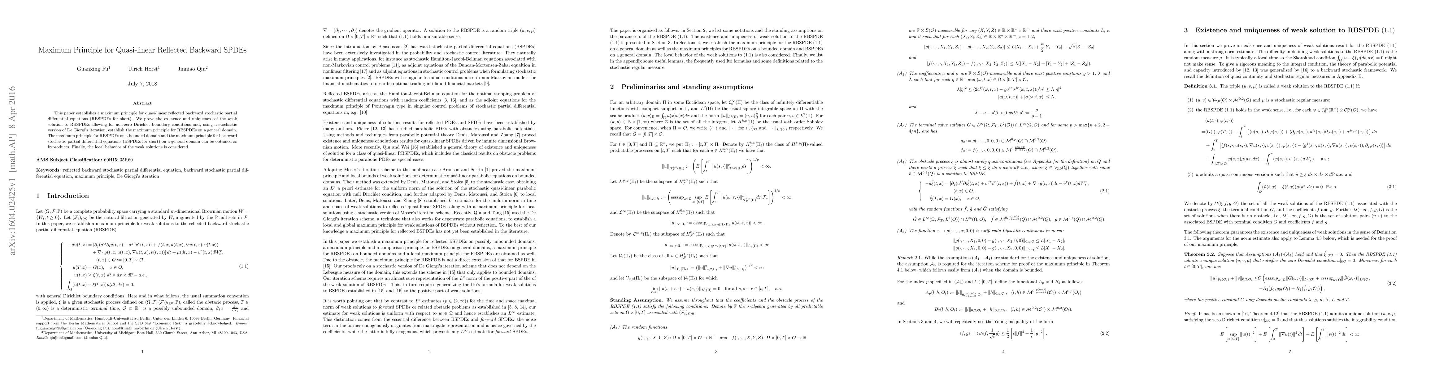 This paper establishes a maximum principle for quasi-linear reflected backward stochastic partial differential equations (RBSPDEs), proving existence and uniqueness of weak solutions with non-zero Dirichlet boundary conditions, and deriving the maximum principle using a stochastic version of De Giorgi's iteration. The study also examines the local behavior of these solutions.