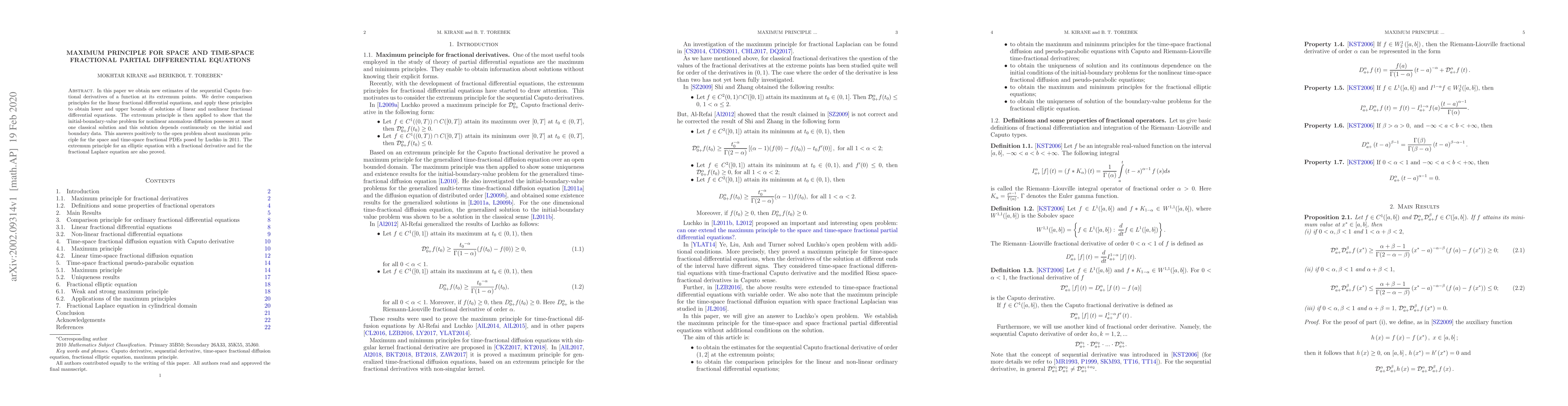 This paper establishes new estimates for sequential Caputo fractional derivatives and derives comparison principles for linear fractional differential equations, providing lower and upper bounds for their solutions. It confirms the existence of at most one classical solution for the initial-boundary-value problem of nonlinear anomalous diffusion, addressing Luchko's 2011 open problem on the maximum principle for space and time-space fractional PDEs.