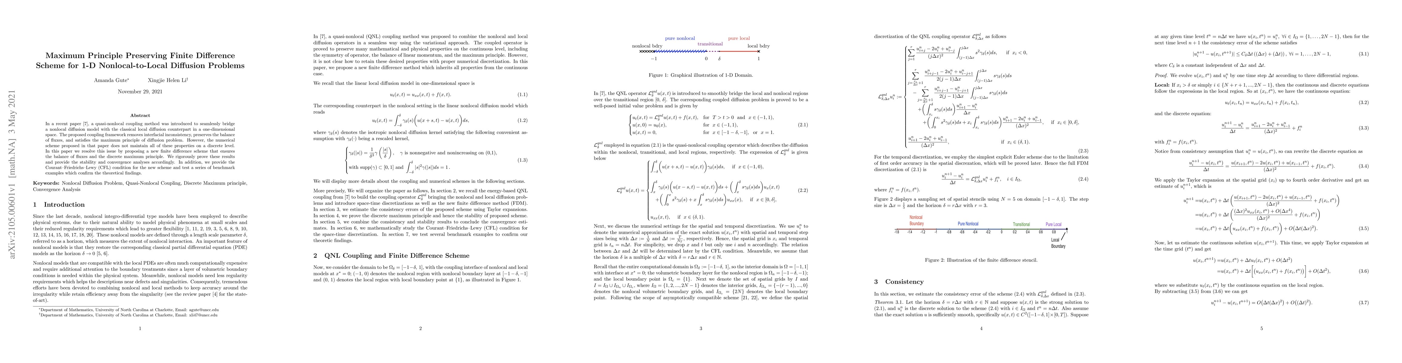 This paper proposes a new finite difference scheme for 1-D nonlocal-to-local diffusion problems that maintains flux balance and satisfies the discrete maximum principle. The scheme is rigorously proven to be stable and convergent, and benchmark examples confirm the theoretical results.