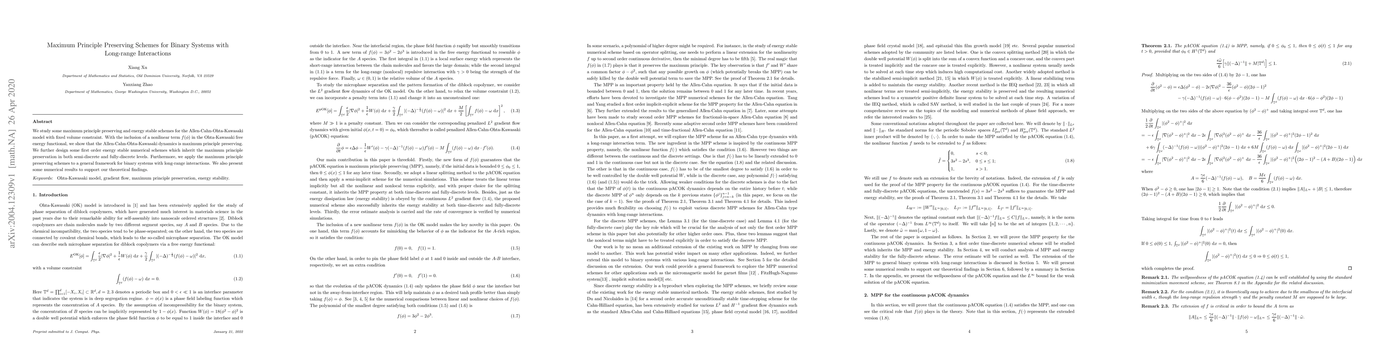 This paper develops maximum principle preserving and energy stable schemes for the Allen-Cahn-Ohta-Kawasaki model, demonstrating its maximum principle preservation due to a nonlinear term. It designs first-order numerical schemes that maintain this property and applies them to binary systems with long-range interactions, supported by numerical results.