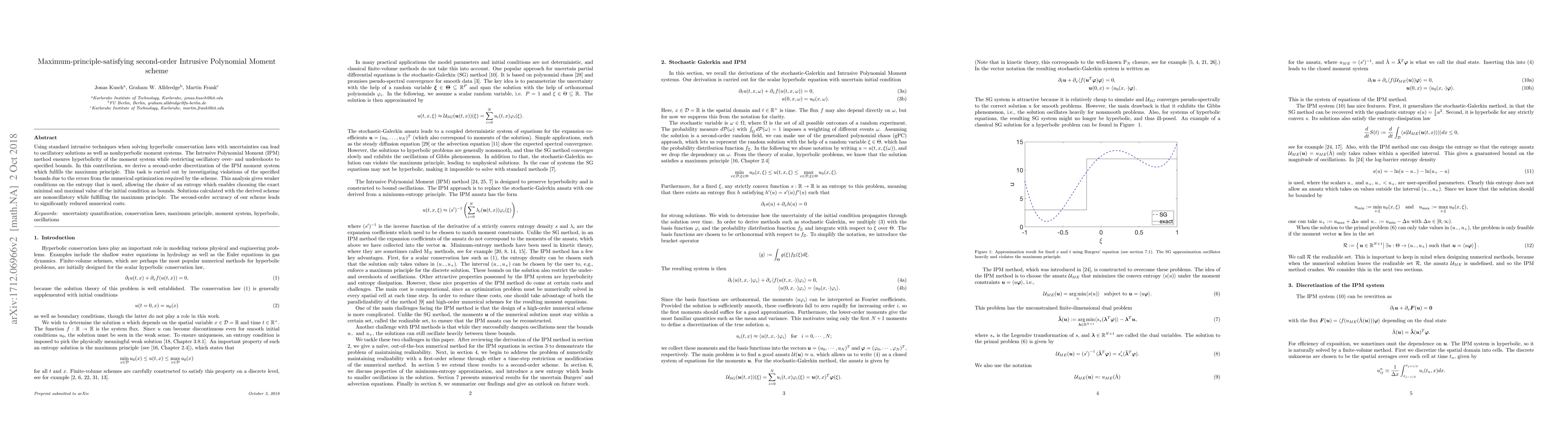 Using standard intrusive techniques when solving hyperbolic conservation laws with uncertainties can lead to oscillatory solutions as well as nonhyperbolic moment systems. The Intrusive Polynomial Moment (IPM) method ensures hyperbolicity of the moment system while restricting oscillatory over- and undershoots of specified bounds. In this contribution, we derive a second-order discretization of the IPM moment system which fulfills the maximum principle. This task is carried out by investigating violations of the specified bounds due to the errors from the numerical optimization required by the scheme. This analysis gives weaker conditions on the entropy that is used, allowing the choice of an entropy which enables choosing the exact minimal and maximal value of the initial condition as bounds. Solutions calculated with the derived scheme are nonoscillatory while fulfilling the maximum principle. The second-order accuracy of our scheme leads to significantly reduced numerical costs.