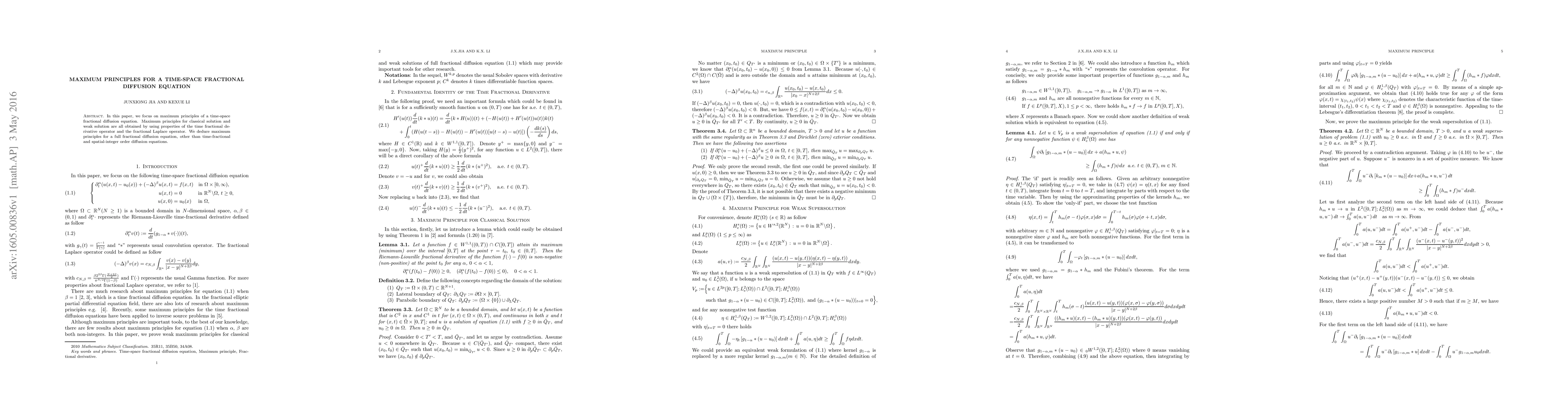Summary: This research establishes maximum principles for both classical and weak solutions of a time-space fractional diffusion equation, leveraging properties of fractional derivatives and operators. It extends these principles to full fractional diffusion models, beyond traditional time-fractional or integer-order spatial diffusion equations.