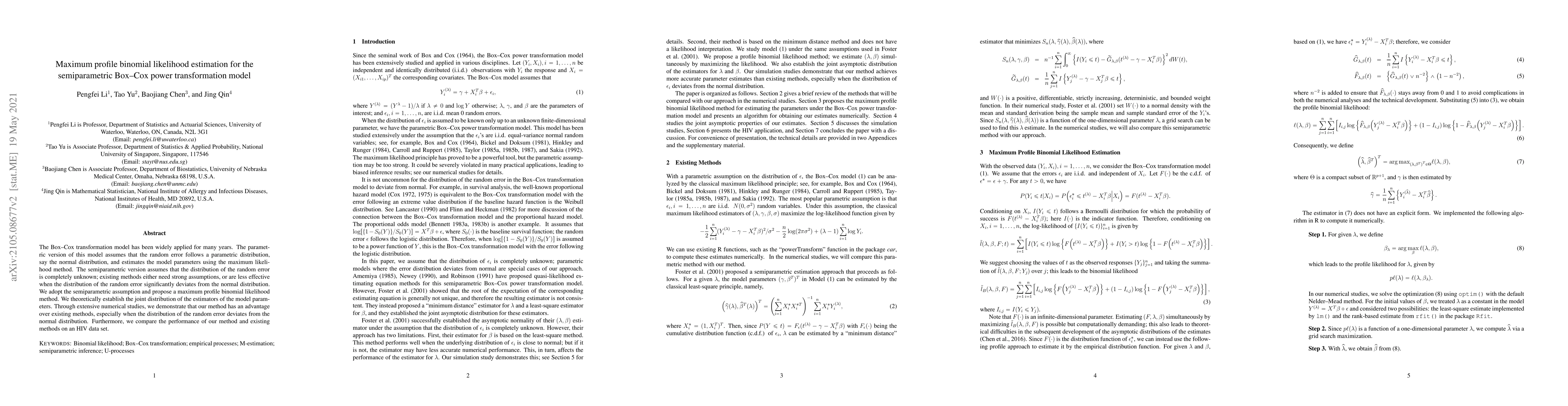 This paper proposes a maximum profile binomial likelihood estimation for the semiparametric Box-Cox power transformation model, addressing the limitations of existing methods when the error distribution deviates from the normal distribution. The method is shown to outperform existing techniques through theoretical analysis and numerical studies, including an application to an HIV data set.