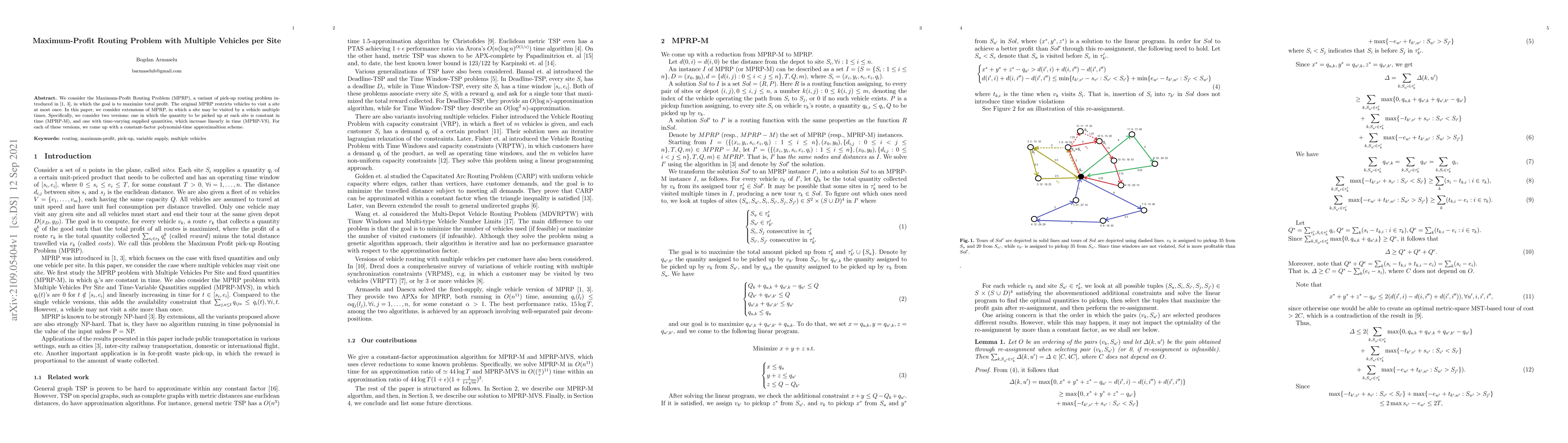 We consider the Maximum-Profit Routing Problem (MPRP), a variant of pick-up routing problem introduced in \cite{Armaselu-arXiv-2016, Armaselu-PETRA}, in which the goal is to maximize total profit. The original MPRP restricts vehicles to visit a site at most once. In this paper, we consider extensions of MPRP, in which a site may be visited by a vehicle multiple times. Specifically, we consider two versions: one in which the quantity to be picked up at each site is constant in time (MPRP-M), and one with time-varying supplied quantities, which increase linearly in time (MPRP-VS). For each of these versions, we come up with a constant-factor polynomial-time approximaltion scheme.