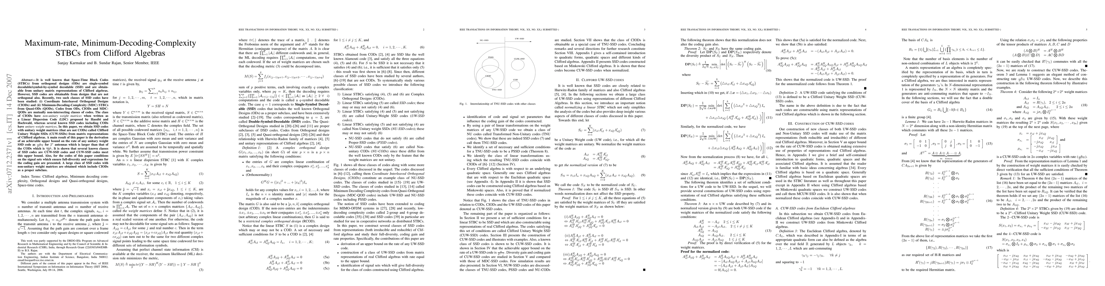This paper introduces Clifford Unitary Weight SSDs (CUW-SSDs) derived from Clifford algebras, achieving a higher rate upper bound of $\frac{a}{2^{a-1}}$ for $2^a$ antennas compared to traditional CODs. It also presents conditions for full-diversity and coding gain for these codes.
