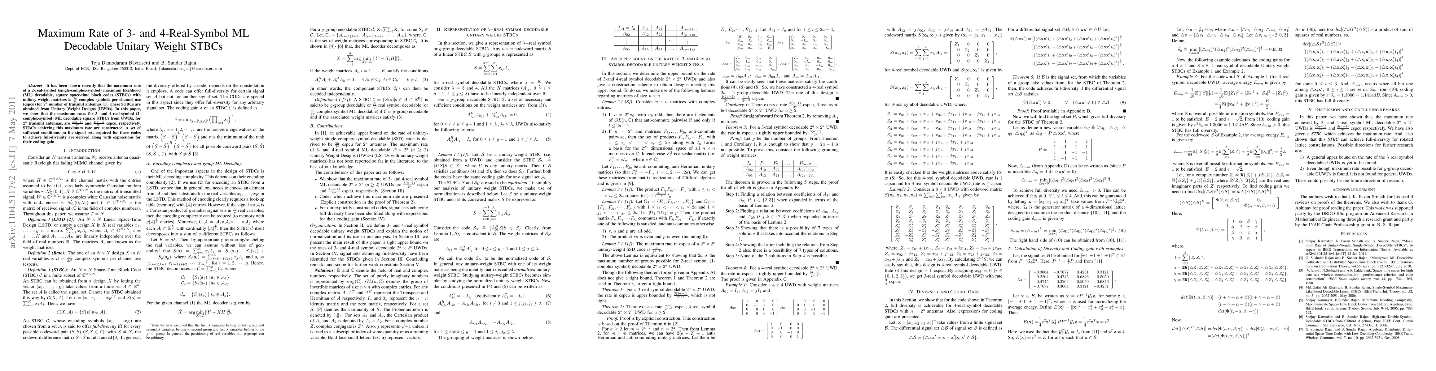 This paper extends the maximum rate analysis for maximum likelihood decodable square space-time block codes (STBCs) to 3- and 4-real-symbol cases, showing rates of $\frac{3(a-1)}{2^{a}}$ and $\frac{4(a-1)}{2^{a}}$ complex symbols per channel use, respectively, for $2^{a}$ transmit antennas. It constructs STBCs achieving these rates and provides conditions for full-diversity and coding gain expressions.
