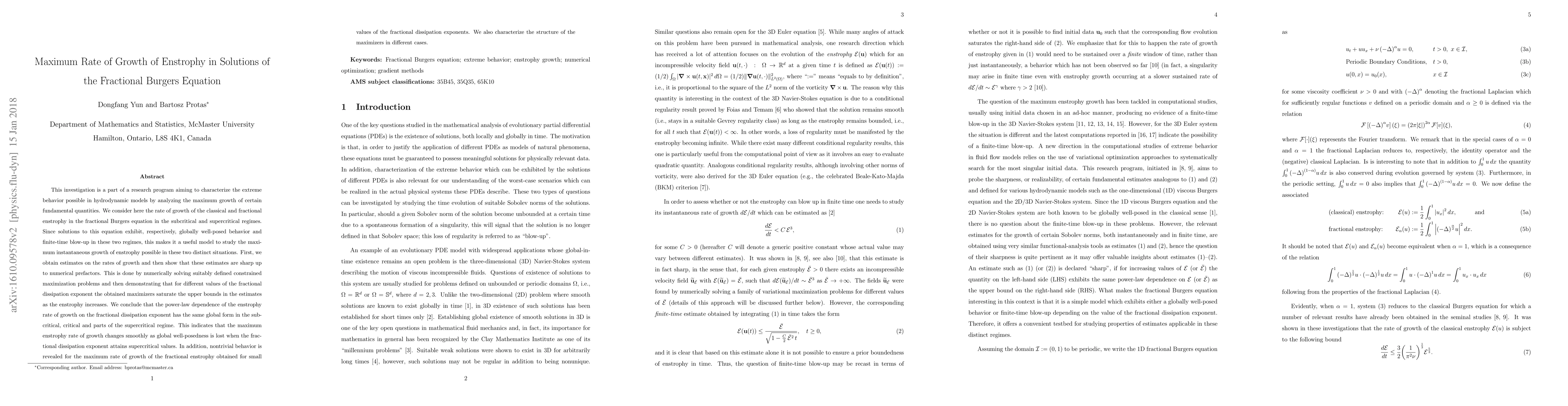 This study investigates the maximum growth rate of enstrophy in fractional Burgers equation solutions, analyzing both subcritical and supercritical regimes. Numerically derived estimates show sharp bounds for enstrophy growth rates, revealing smooth transitions in the rate as dissipation exponent increases, with nontrivial behavior for small dissipation values.