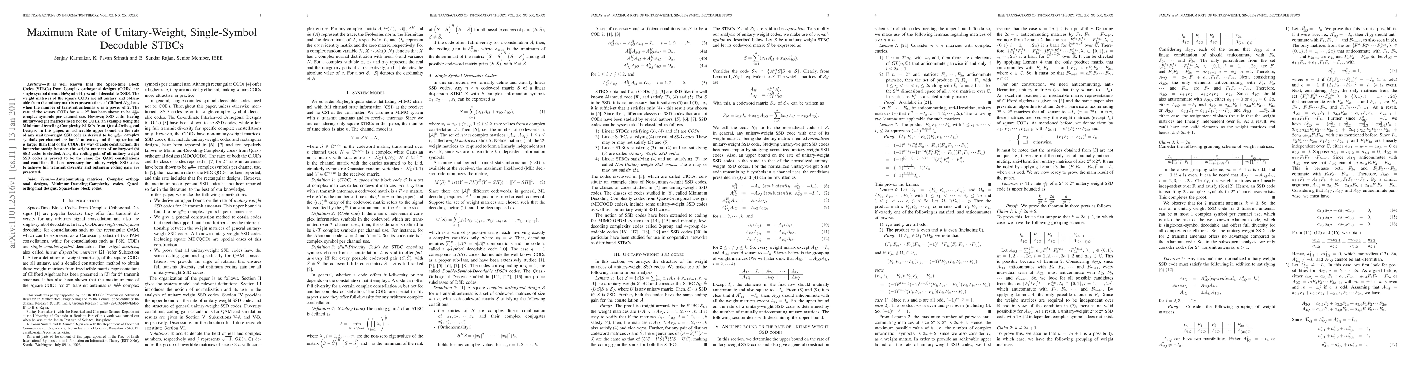 This paper derives an upper bound on the rate of unitary-weight, single-symbol decodable Space-time Block Codes (STBCs) for $2^a$ transmit antennas, showing it to be $\frac{a}{2^{a-1}}$ complex symbols per channel use, which exceeds the rate of Complex orthogonal designs. It also explores the construction and properties of these codes, proving equal coding gain for QAM constellations and conditions for full transmit diversity and optimum coding gain.
