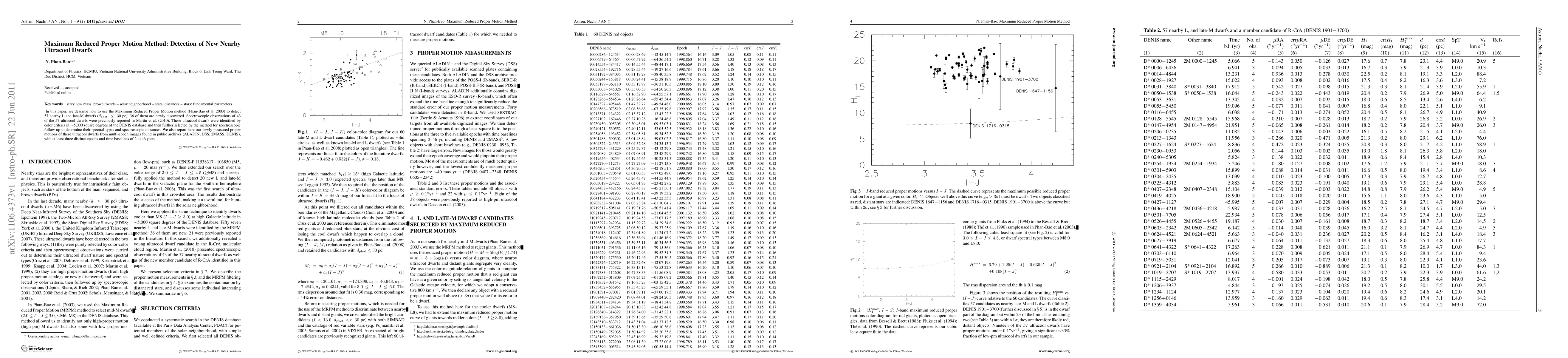In this paper, we describe how to use the Maximum Reduced Proper Motion method (Phan-Bao et al. 2003) to detect 57 nearby L and late-M dwarfs (d_phot <= 30 pc): 36 of them are newly discovered. Spectroscopic observations of 43 of the 57 ultracool dwarfs were previously reported in Martin et al. (2010). These ultracool dwarfs were identified by color criteria in ~5,000 square degrees of the DENIS database and then further selected by the method for spectroscopic follow-up to determine their spectral types and spectroscopic distances. We also report here our newly measured proper motions of these ultracool dwarfs from multi-epoch images found in public archives (ALADIN, DSS, 2MASS, DENIS), with at least three distinct epochs and time baselines of 2 to 46 years.