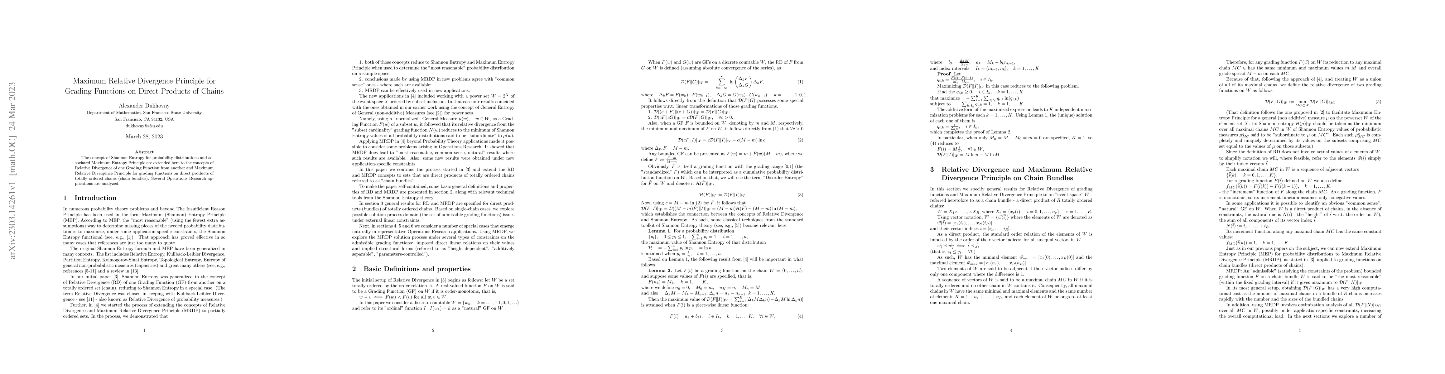 This paper extends the Maximum Entropy Principle to the Maximum Relative Divergence Principle for grading functions on direct products of chains, analyzing its applications in Operations Research. The study focuses on the Relative Divergence of grading functions and its implications for optimization problems.