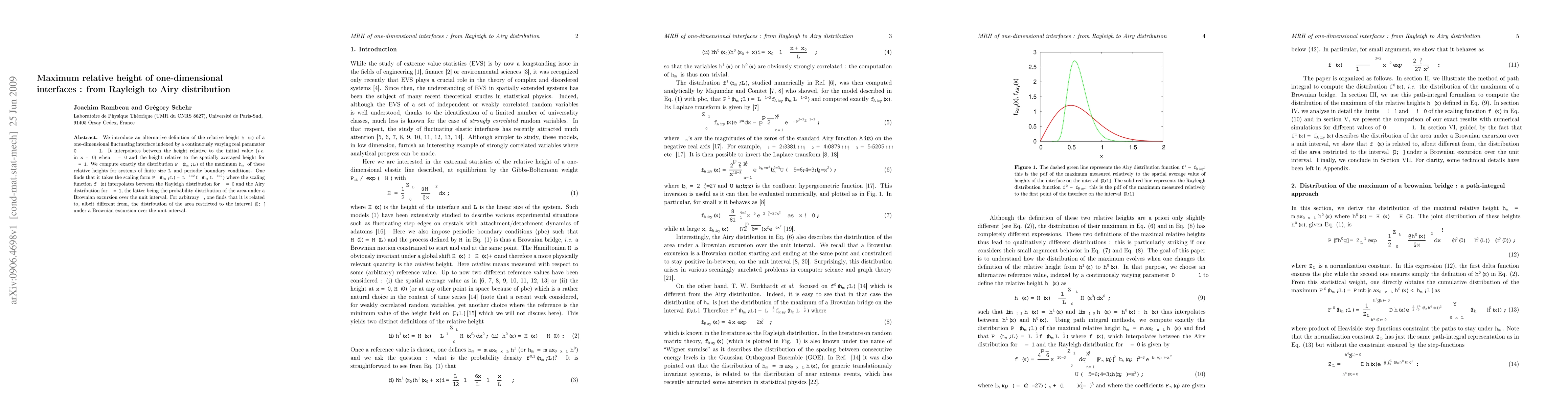 This paper introduces a new definition for the relative height of fluctuating one-dimensional interfaces and computes the exact distribution of their maximum heights, which scales between the Rayleigh distribution and the Airy distribution depending on the parameter κ. The distribution follows a scaling form with a function that interpolates between these two distributions.