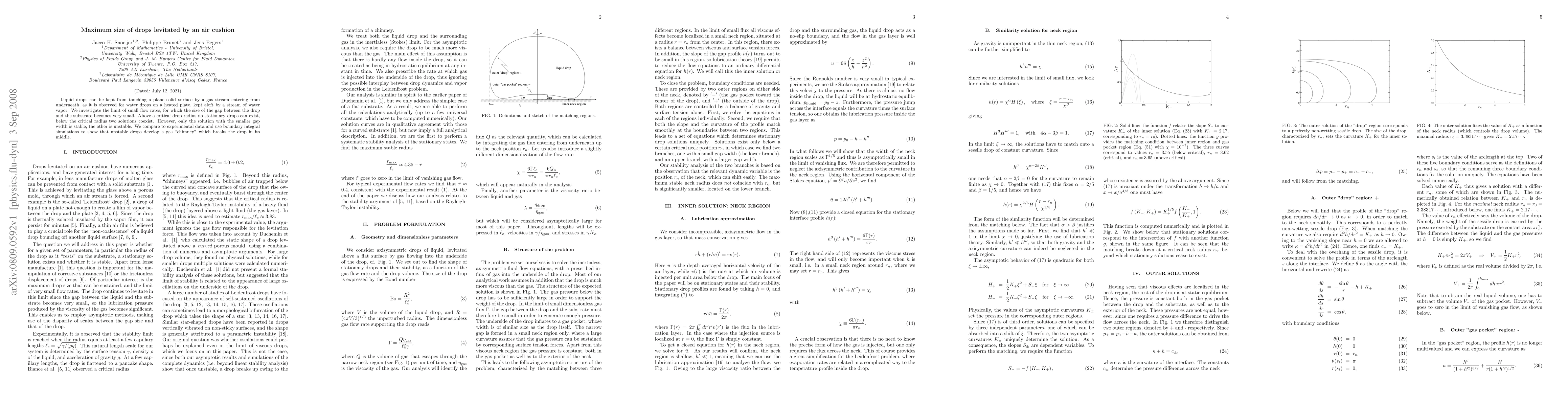 Researchers investigated how small liquid drops can be suspended in mid-air using a gas stream, finding that above a critical radius, unstable drops develop a 'chimney' that breaks the drop in half.