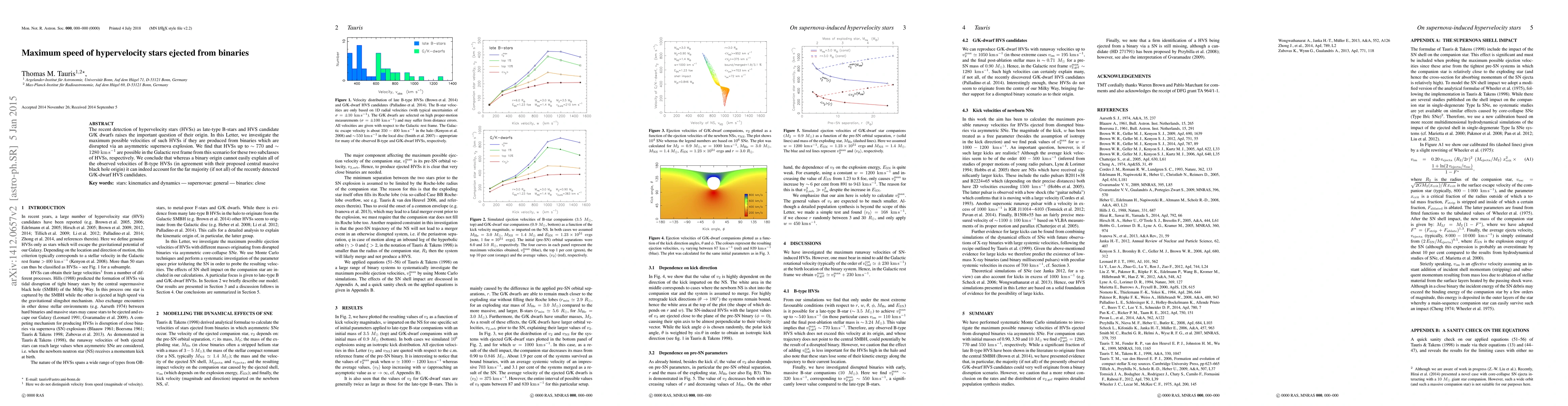 This paper investigates the maximum velocities of hypervelocity stars ejected from disrupted binary systems via asymmetric supernova explosions, finding that such stars can reach up to 770 km/s for B-type stars and 1280 km/s for G/K-dwarf stars. It concludes that while binary disruption is unlikely to explain all B-type hypervelocity stars, it could account for most G/K-dwarf hypervelocity stars.