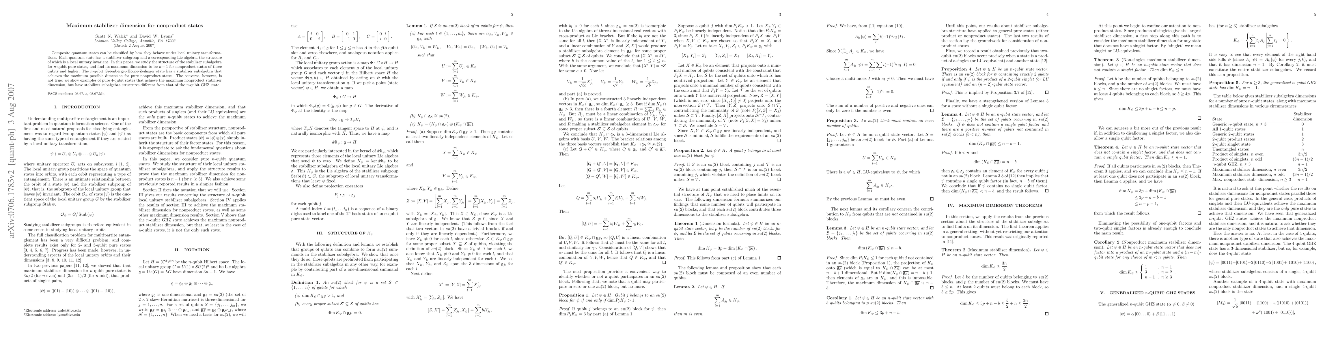 This paper investigates the maximum dimension of the stabilizer subalgebra for n-qubit pure states, finding it to be n-1 for nonproduct states of three qubits and higher. The n-qubit Greenberger-Horne-Zeilinger state achieves this maximum dimension, but not all pure 4-qubit states with this dimension share its stabilizer structure.