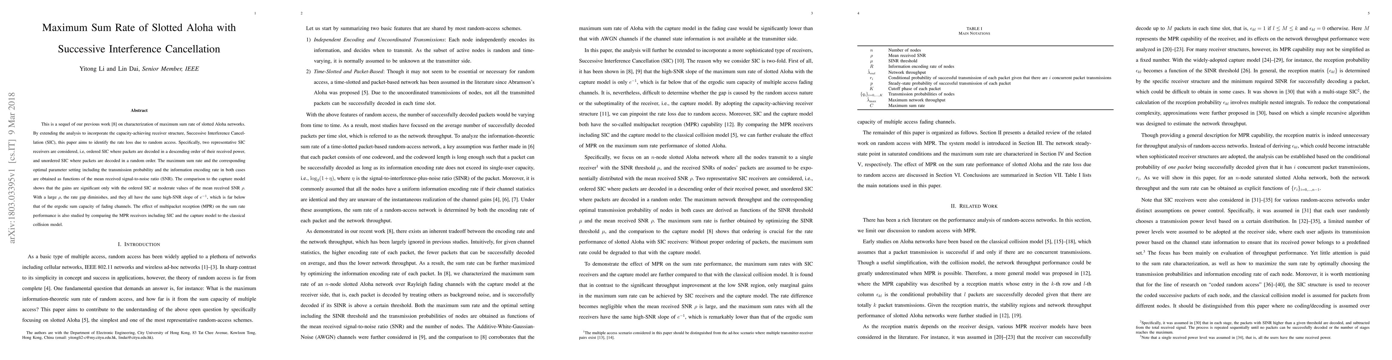 This paper extends previous work on slotted Aloha networks to include Successive Interference Cancellation (SIC) for maximum sum rate characterization. It identifies rate losses due to random access, comparing ordered and unordered SIC receivers, and finds significant gains with ordered SIC at moderate SNR values.