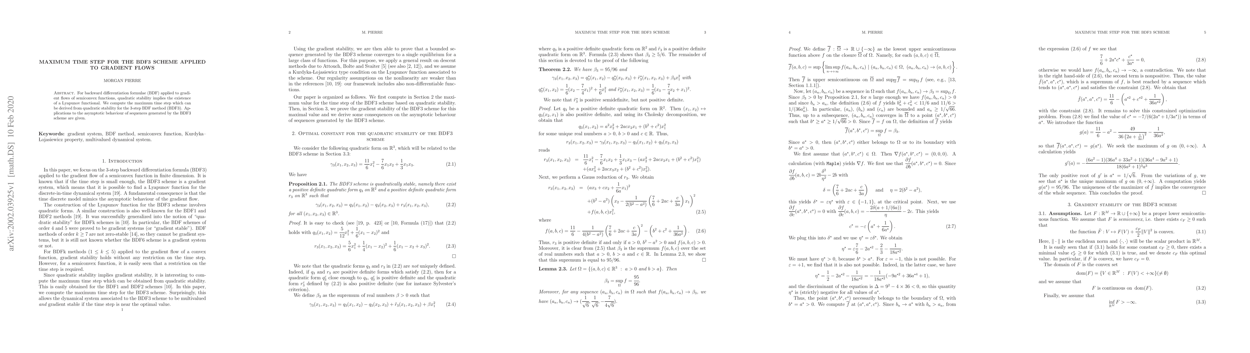 This paper determines the maximum time step for the 3-step BDF method (BDF3) applied to gradient flows of semiconvex functions, leveraging quadratic stability and the existence of a Lyapunov functional. It also discusses the implications for the asymptotic behavior of sequences generated by the BDF3 scheme.