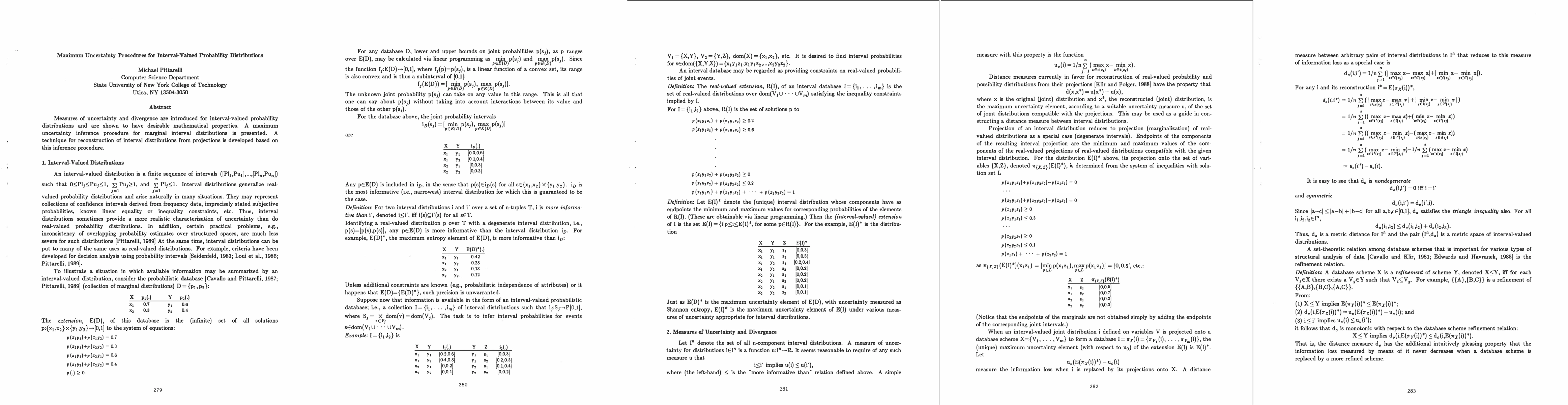 A new method for analyzing uncertainty in probability distributions with interval values is introduced, allowing for the creation of maximum uncertainty procedures and techniques for reconstructing distributions from projections.