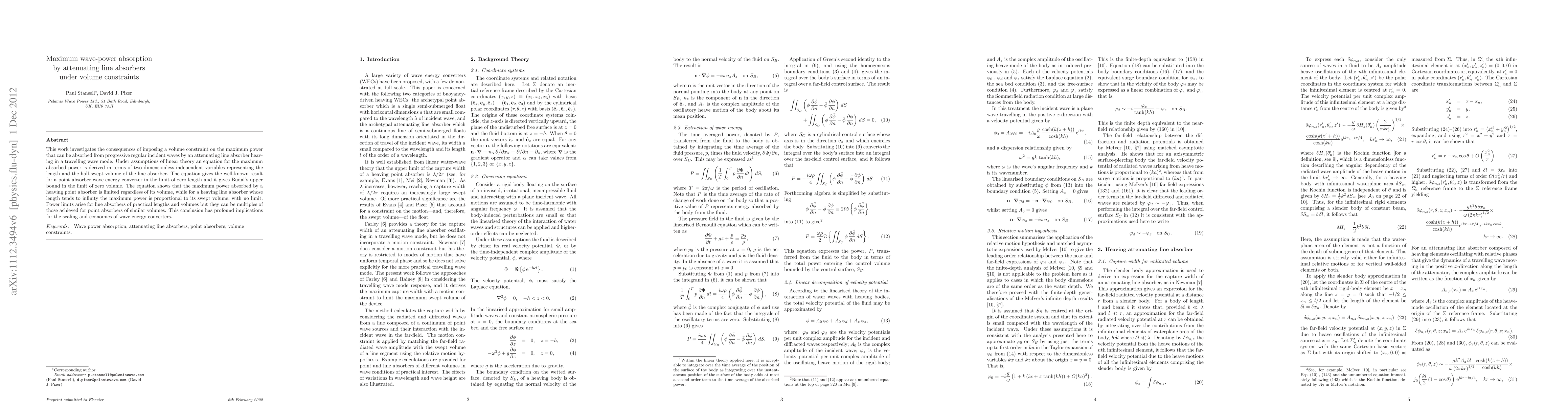Researchers found that maximum wave power absorption is limited for heaving line absorbers of practical lengths, but can increase with volume for longer absorbers. This has significant implications for the scaling and economics of wave energy converters.