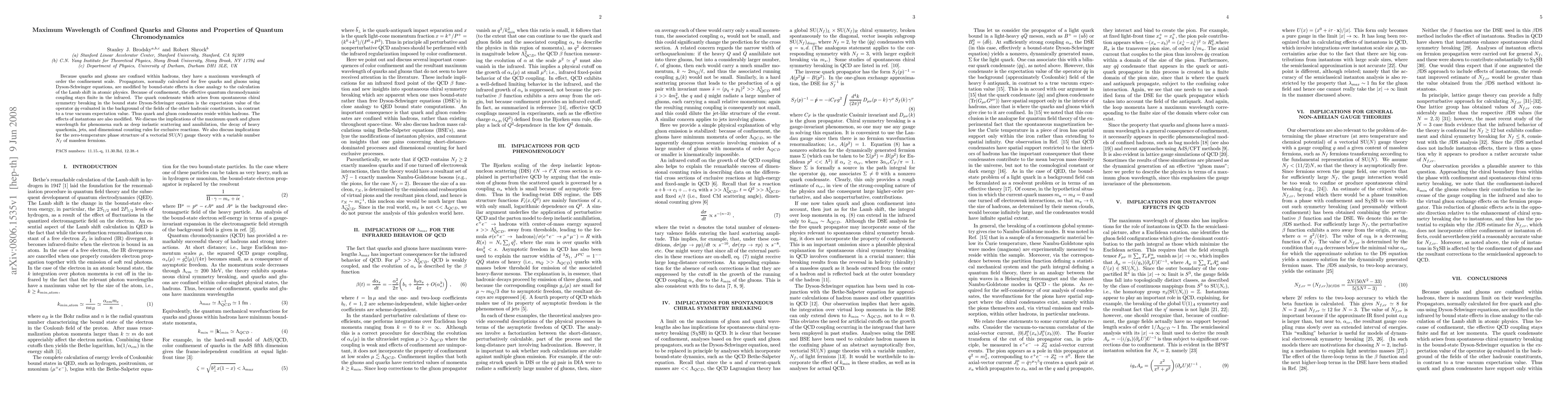 Because quarks and gluons are confined within hadrons, they have a maximum wavelength of order the confinement scale. Propagators, normally calculated for free quarks and gluons using Dyson-Schwinger equations, are modified by bound-state effects in close analogy to the calculation of the Lamb shift in atomic physics. Because of confinement, the effective quantum chromodynamic coupling stays finite in the infrared. The quark condensate which arises from spontaneous chiral symmetry breaking in the bound state Dyson-Schwinger equation is the expectation value of the operator $\bar q q$ evaluated in the background of the fields of the other hadronic constituents, in contrast to a true vacuum expectation value. Thus quark and gluon condensates reside within hadrons. The effects of instantons are also modified. We discuss the implications of the maximum quark and gluon wavelength for phenomena such as deep inelastic scattering and annihilation, the decay of heavy quarkonia, jets, and dimensional counting rules for exclusive reactions. We also discuss implications for the zero-temperature phase structure of a vectorial SU($N$) gauge theory with a variable number $N_f$ of massless fermions.