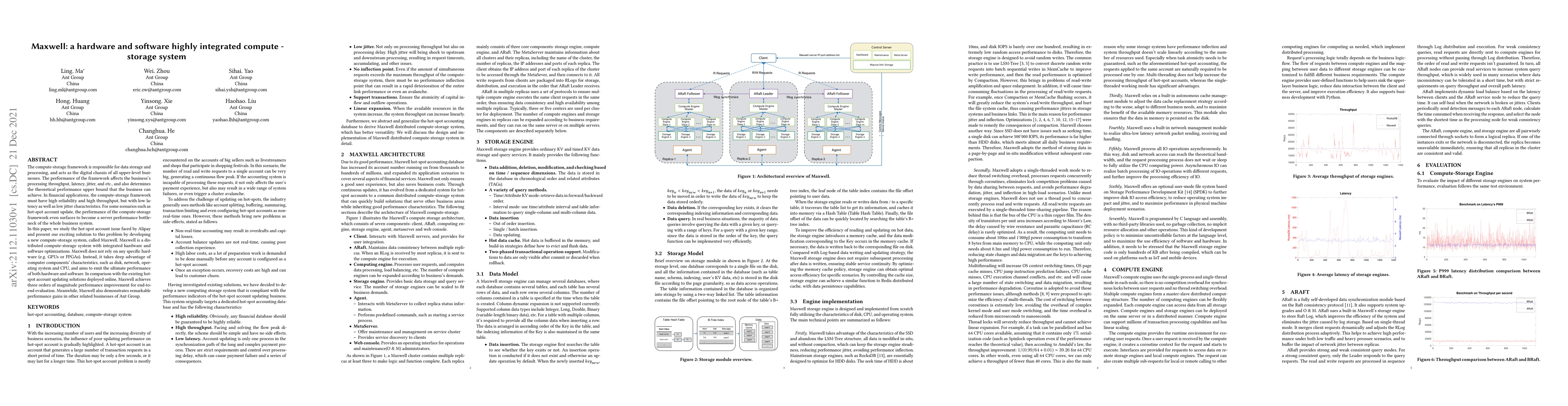 Maxwell is a highly integrated compute-storage system that optimizes both hardware and software to significantly improve performance for hot-spot account updates in financial applications. It achieves three orders of magnitude performance improvement over existing solutions.