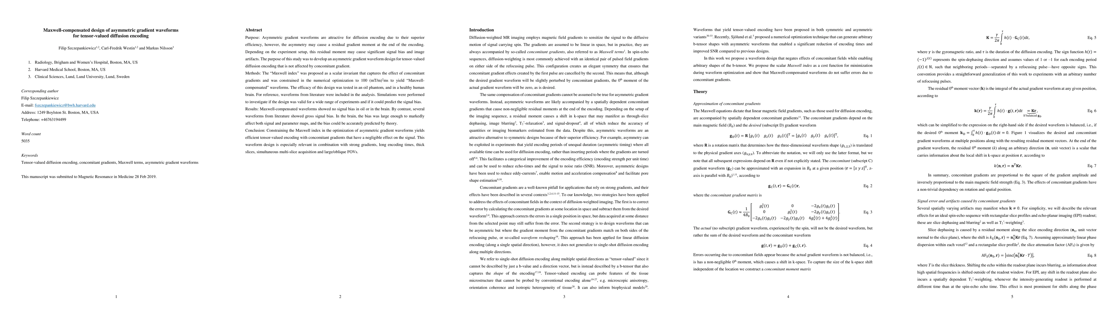 This study developed Maxwell-compensated asymmetric gradient waveforms for tensor-valued diffusion encoding, minimizing residual gradient moments to avoid signal bias and artifacts. The proposed waveforms, constrained by the Maxwell index, showed no bias in both oil phantoms and human brain scans, contrasting with literature waveforms that exhibited significant bias.