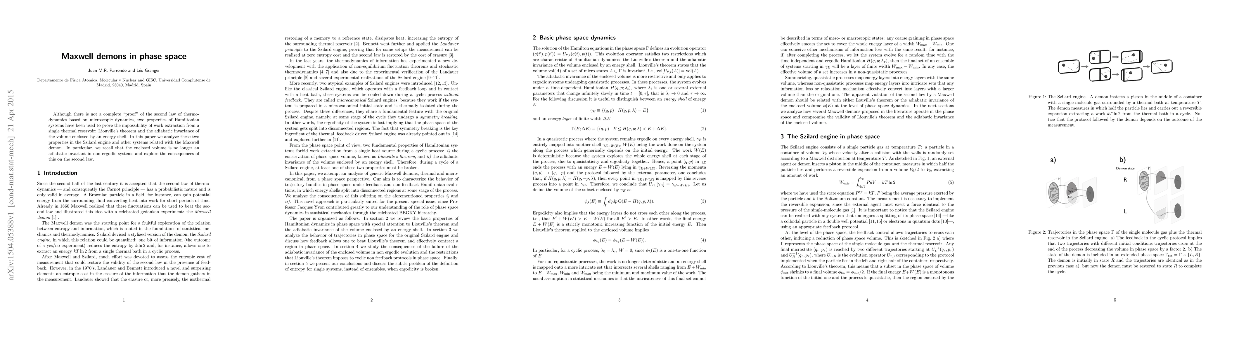 Researchers analyze Maxwell demons in phase space to explore consequences on the second law of thermodynamics, finding that non-ergodic systems violate adiabatic invariance of energy shells.