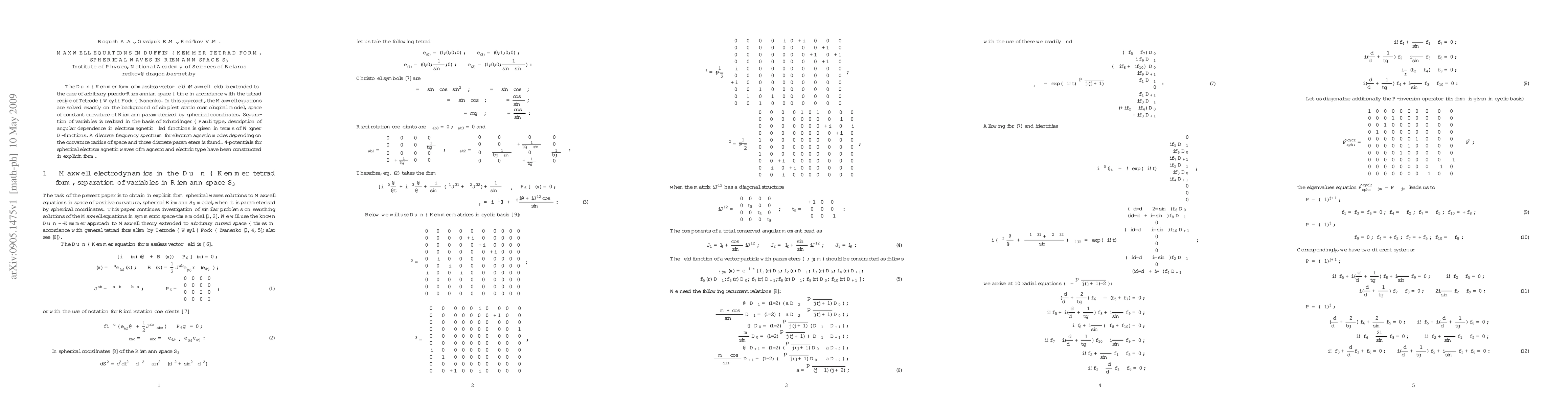 This paper extends the Duffin-Kemmer form of the Maxwell equations to arbitrary pseudo-Riemannian space-time using the tetrad recipe. It solves these equations in a static cosmological model with constant curvature, deriving a discrete frequency spectrum for electromagnetic modes based on curvature and three discrete parameters.
