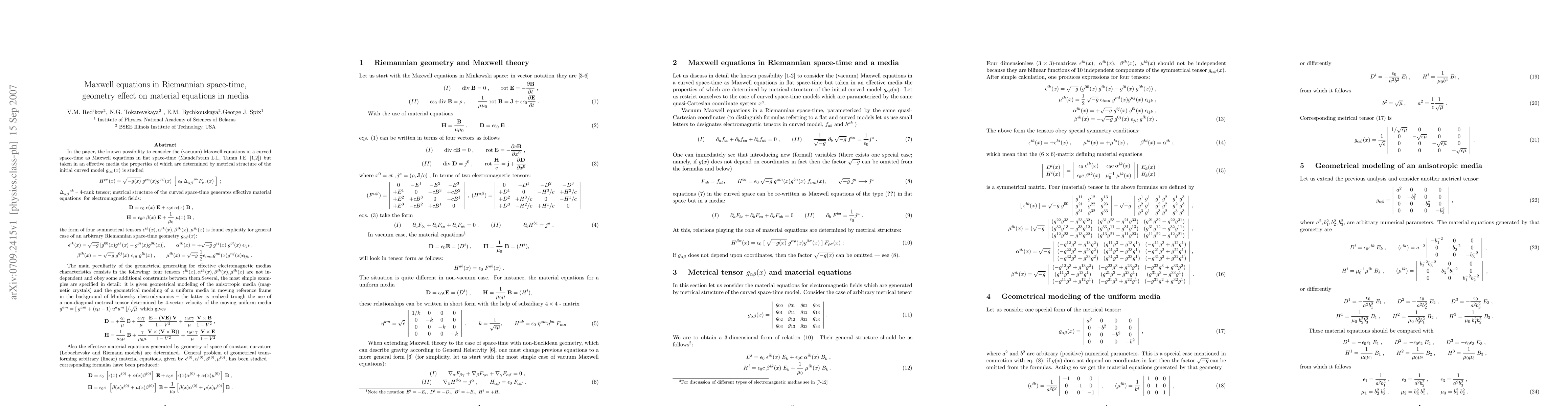 This paper explores how the geometry of curved Riemannian space-time influences the effective material equations for electromagnetic fields, deriving explicit constitutive tensors for arbitrary Riemannian space-time and examining specific examples, including anisotropic media and moving reference frames.