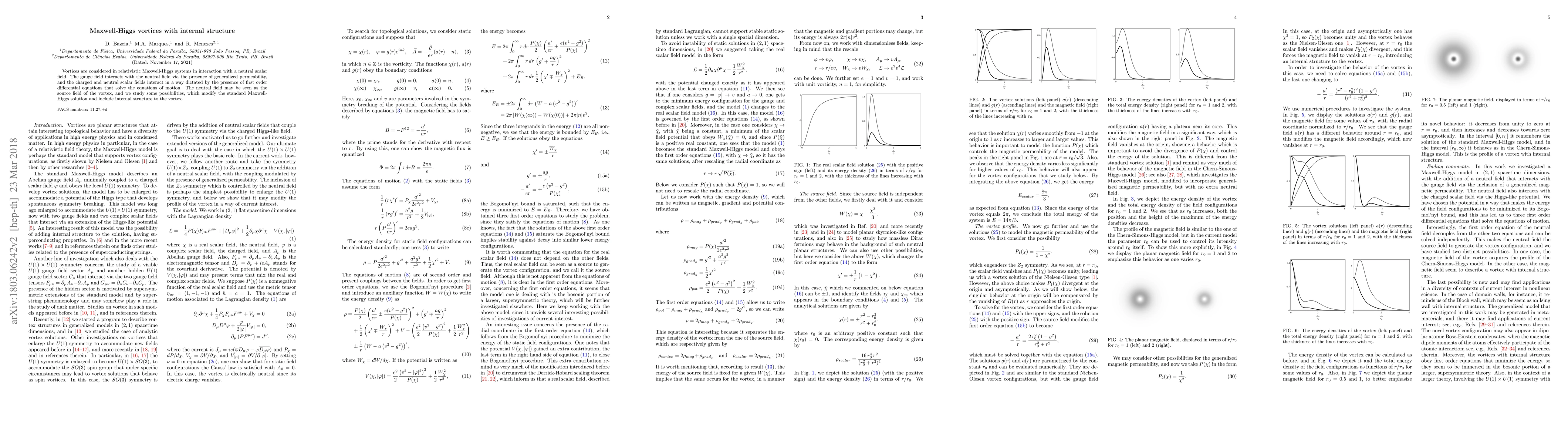 This research explores Maxwell-Higgs vortices with internal structure, modifying standard solutions by incorporating a neutral scalar field. The study uses generalized permeability and first-order differential equations, revealing how the neutral field can give vortices internal structure.