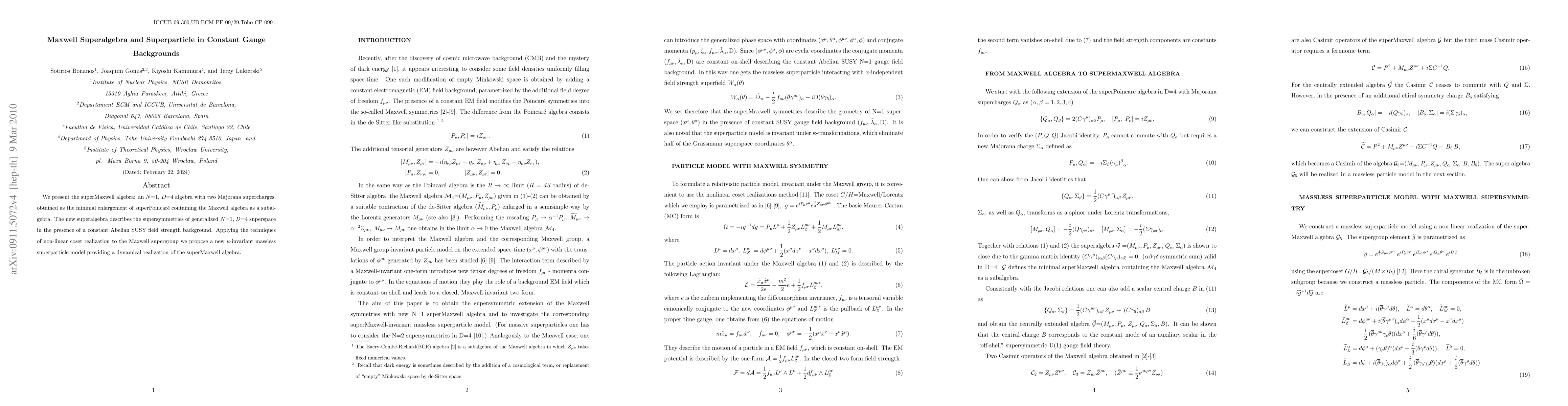 We present SuperMaxwell algebra: an N=1, D=4 algebra with two Majorana supercharges, obtained as the minimal enlargement of superPoincare containing the Maxwell algebra as a subalgebra. The new superalgebra describes the supersymmetries of generalized N=1, D=4 superspace in the presence of a constant Abelian SUSY field strength background. Applying the techniques of non-linear coset realization to the Maxwell supergroup we propose a new kappa-invariant massless superparticle model providing a dynamical realization of the SuperMaxwell algebra.