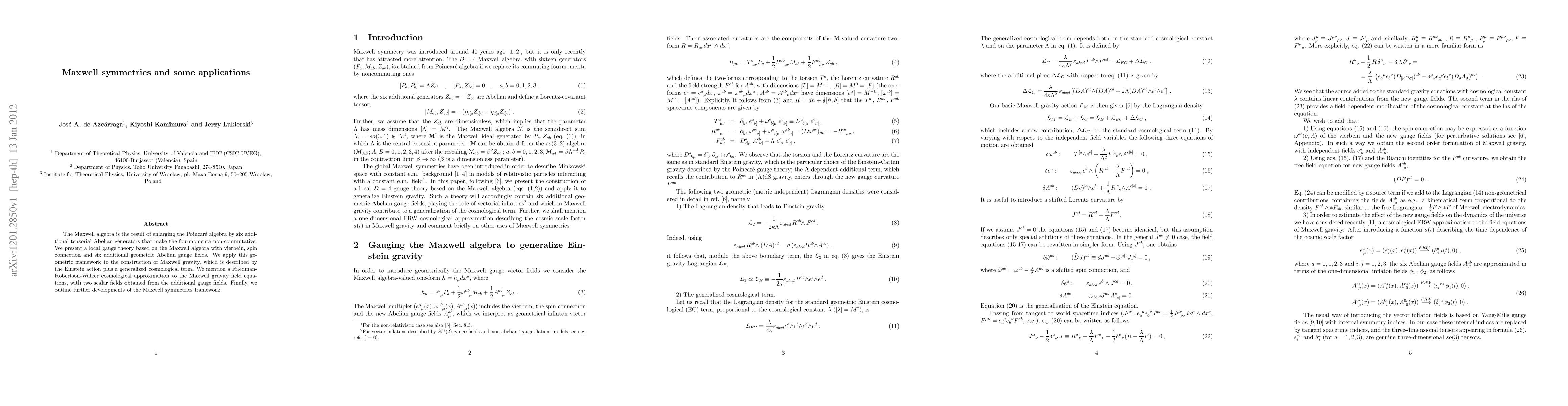The Maxwell algebra is the result of enlarging the Poincar\'{e} algebra by six additional tensorial Abelian generators that make the fourmomenta non-commutative. We present a local gauge theory based on the Maxwell algebra with vierbein, spin connection and six additional geometric Abelian gauge fields. We apply this geometric framework to the construction of Maxwell gravity, which is described by the Einstein action plus a generalized cosmological term. We mention a Friedman-Robertson-Walker cosmological approximation to the Maxwell gravity field equations, with two scalar fields obtained from the additional gauge fields. Finally, we outline further developments of the Maxwell symmetries framework.