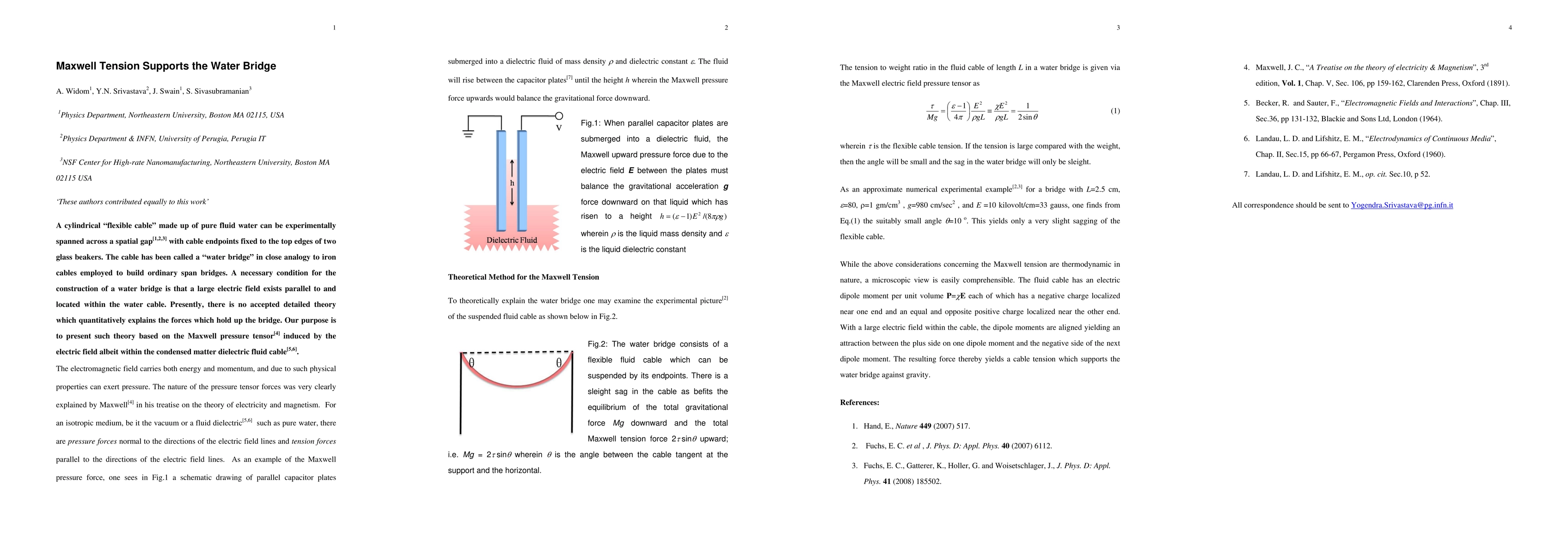 A cylindrical flexible cable made up of pure fluid water can be experimentally spanned across a spatial gap with cable endpoints fixed to the top edges of two glass beakers. The cable has been called a water bridge in close analogy to iron cables employed to build ordinary span bridges. A necessary condition for the construction of a water bridge is that a large electric field exists parallel to and located within the water cable. Presently, there is no accepted detailed theory which quantitatively explains the forces which hold up the bridge. Our purpose is to present such theory based on the Maxwell pressure tensor induced by the electric field albeit within the condensed matter dielectric fluid cable.