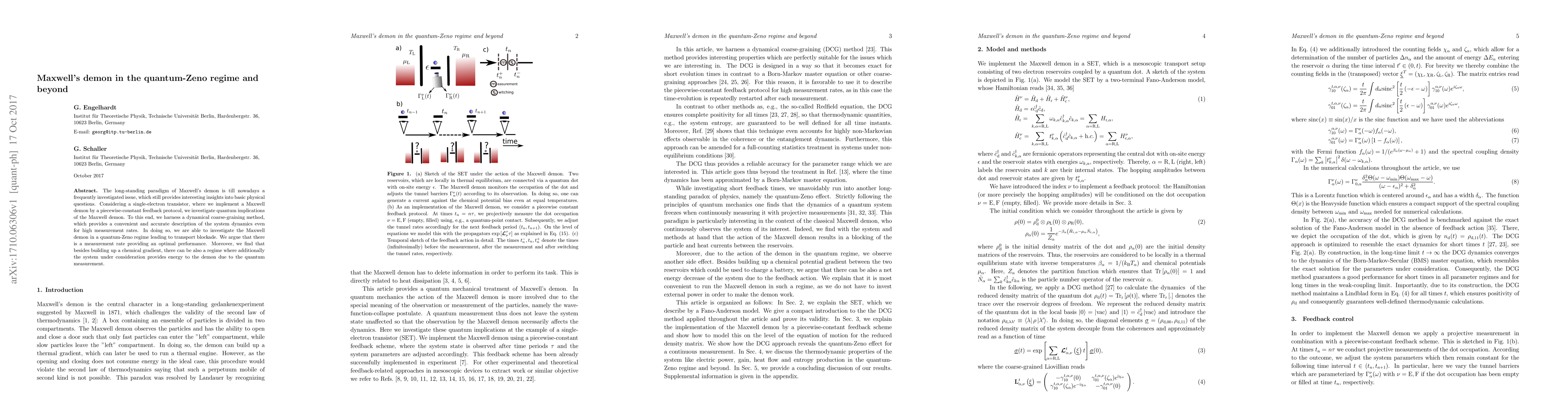The long-standing paradigm of Maxwell's demon is till nowadays a frequently investigated issue, which still provides interesting insights into basic physical questions. Considering a single-electron transistor, where we implement a Maxwell demon by a piecewise-constant feedback protocol, we investigate quantum implications of the Maxwell demon. To this end, we harness a dynamical coarse-graining method, which provides a convenient and accurate description of the system dynamics even for high measurement rates. In doing so, we are able to investigate the Maxwell demon in a quantum-Zeno regime leading to transport blockade. We argue that there is a measurement rate providing an optimal performance. Moreover, we find that besides building up a chemical gradient, there can be also a regime where additionally the system under consideration provides energy to the demon due to the quantum measurement.