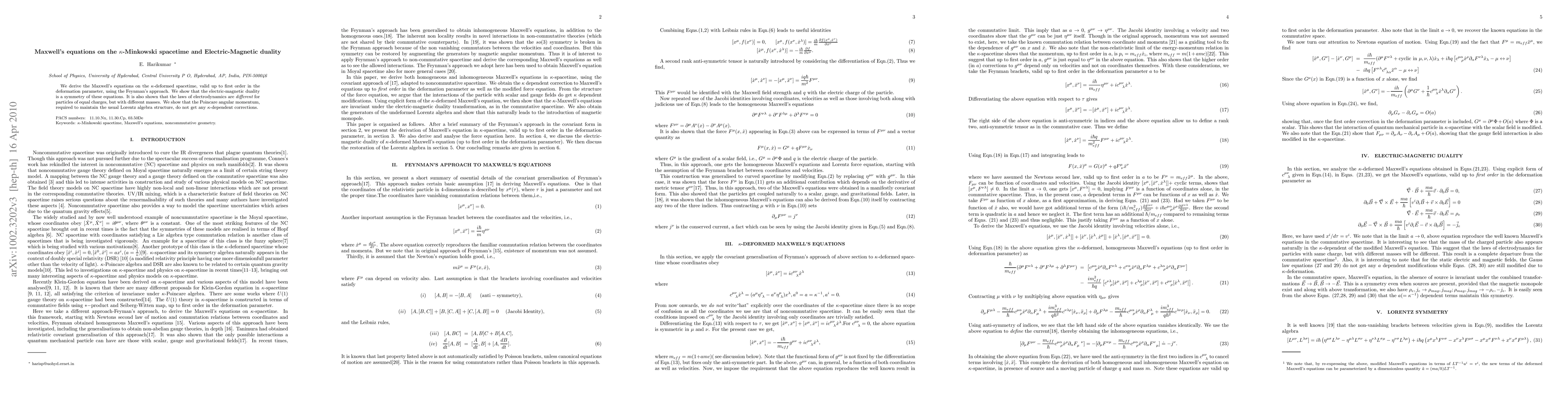 This paper derives Maxwell's equations on the $\kappa$-Minkowski spacetime up to first order in the deformation parameter, revealing electric-magnetic duality as a symmetry. It also highlights that electrodynamics laws differ for particles with equal charges but different masses, while $\kappa$-dependent corrections do not affect the Poincaré angular momentum.
