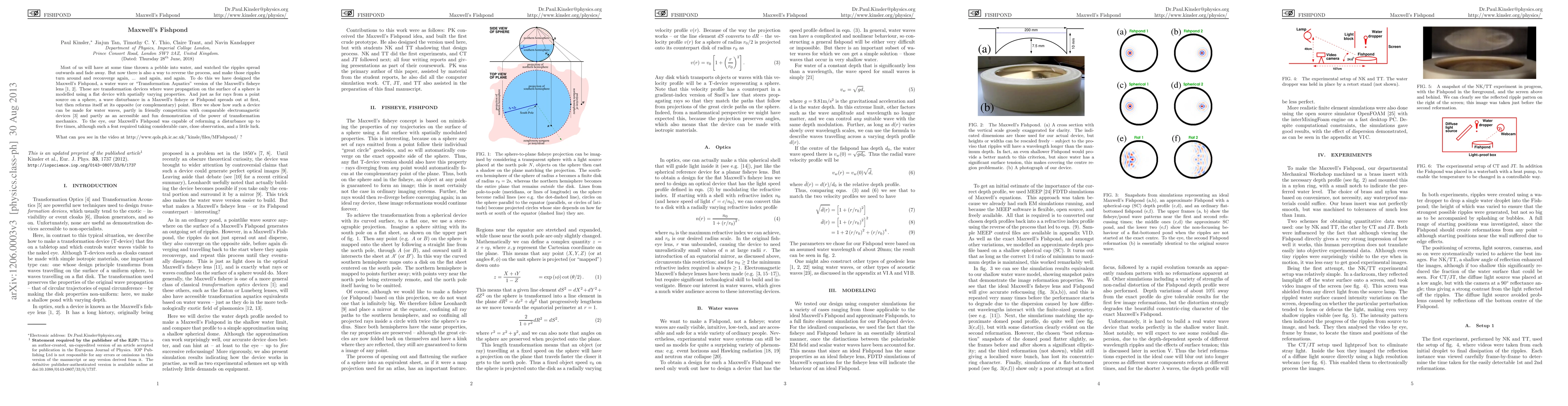 Most of us will have at some time thrown a pebble into water, and watched the ripples spread outwards and fade away. But now there is a way to reverse the process, and make those ripples turn around and reconverge again, ... and again, and again. To do this we have designed the Maxwell's Fishpond, a water wave or "Transformation Aquatics" version of the Maxwell's Fisheye lens [Tyc et al. 2011, Luneberg 1964] that is now well-known from transformation optics. These are transformation devices where wave propagation on the surface of a sphere is not modelled on an actual sphere, but in a flat device with carefully designed spatially varying properties. And just as for rays from a point source on a sphere, a wave disturbance in a Maxwell's Fisheye or Fishpond spreads out at first, but then reforms itself at its opposing point in the device. Here we show how such a device can be made for water waves, partly in friendly competition with comparable electromagnetic devices [Ma et al. 2011] and partly as an accessible and fun demonstration of the power of transformation mechanics. To the eye, our Maxwell's Fishpond was capable of reforming a disturbance up to five times, although such a feat required taking considerable care, close observation, and a little luck. What can you see in the video at http://www.qols.ph.ic.ac.uk/~kinsle/files/MFishpond/ ?