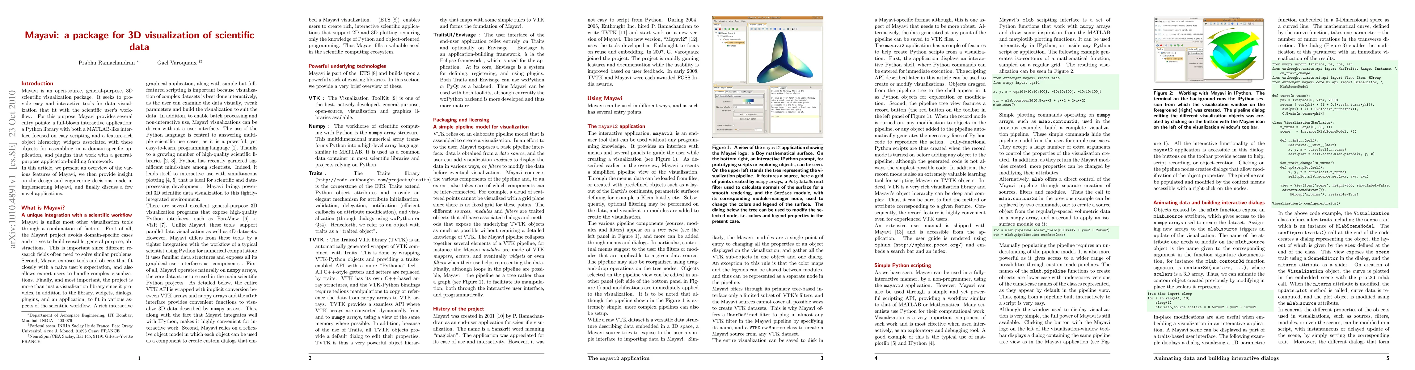 The paper describes Mayavi as an open-source, general-purpose 3D scientific visualization package, providing interactive tools for data visualization fitting into a scientific user's workflow.