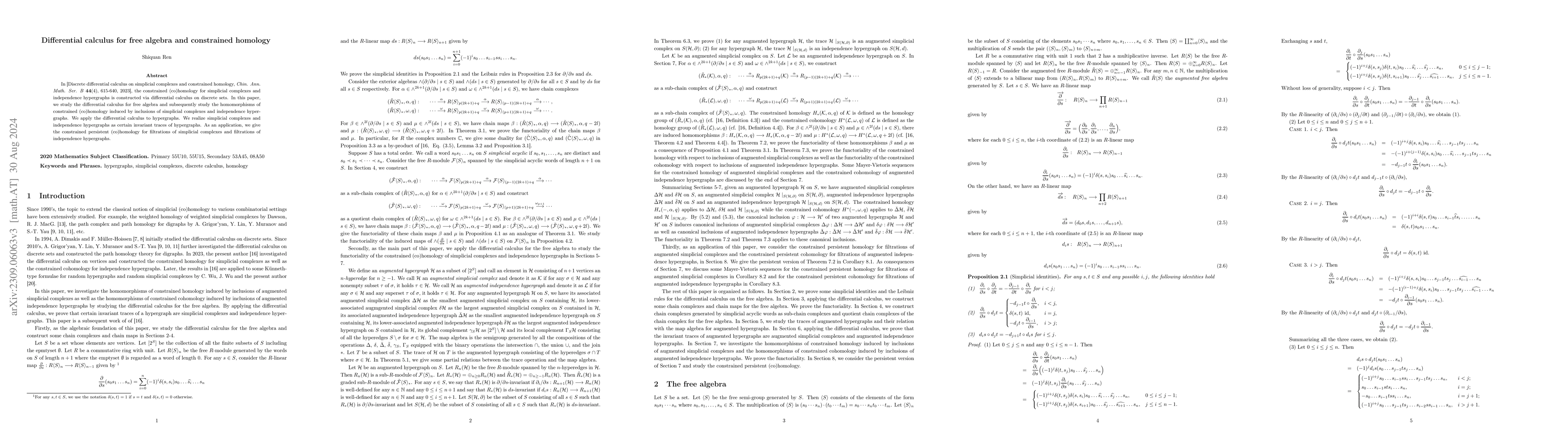 This paper introduces the concept of independence hypergraphs to explore relationships between random hypergraphs and simplicial complexes. It constructs constrained homology and cohomology using differential calculus on discrete sets and proves functorialities. The study includes the Mayer-Vietoris sequences for persistent constrained homology and cohomology, establishing their functorial properties.