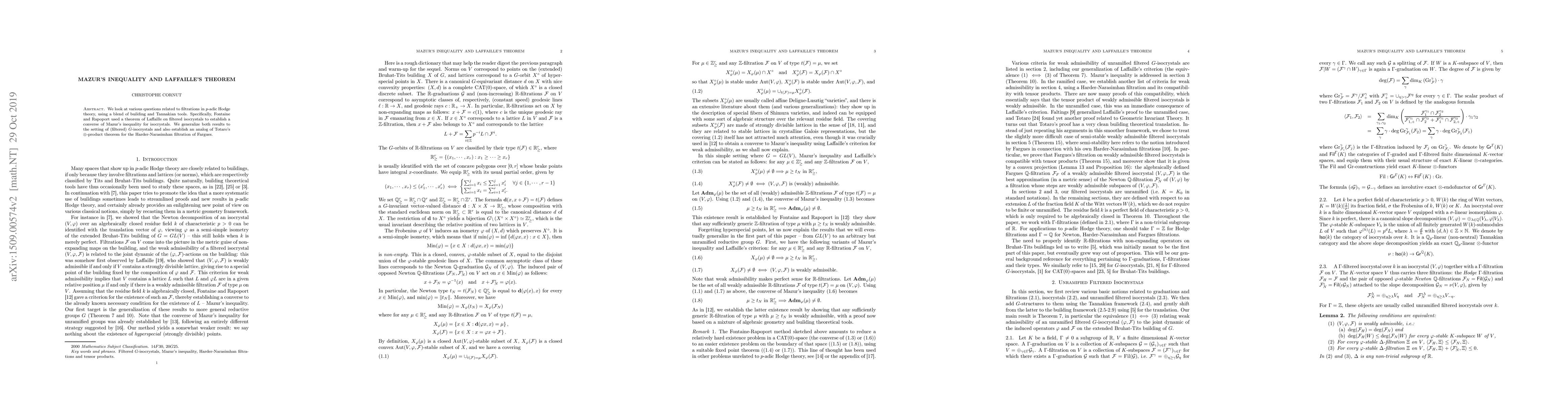 This paper generalizes Mazur's inequality and Laffaille's theorem in the context of $p$-adic Hodge theory, employing Tannakian and building methods. It establishes a converse of Mazur's inequality for filtered $G$-isocrystals and an analog of Totaro's $\otimes$-product theorem for the Harder-Narasimhan filtration.