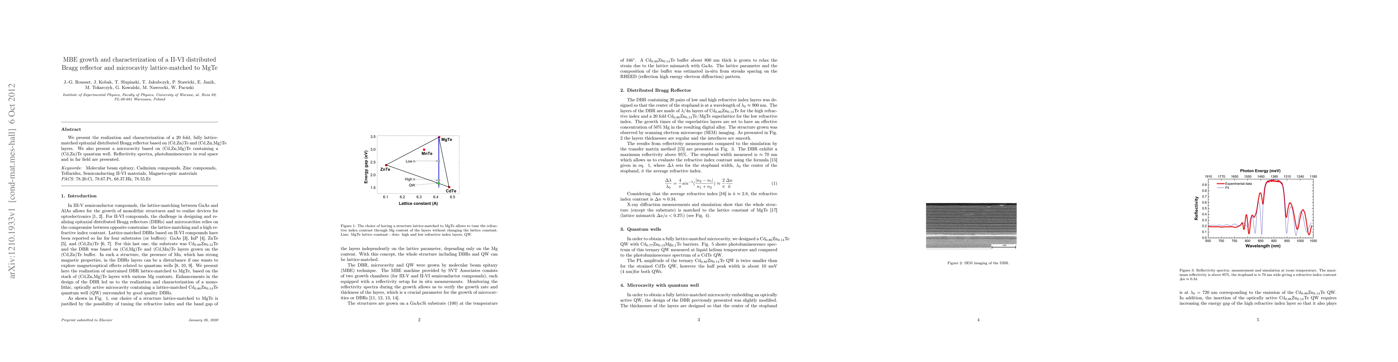 This paper details the molecular beam epitaxy (MBE) growth of a 20-fold lattice-matched distributed Bragg reflector using (Cd,Zn)Te and (Cd,Zn,Mg)Te layers, along with a microcavity containing a (Cd,Zn)Te quantum well, and reports on its reflectivity, photoluminescence, and far-field characterization.