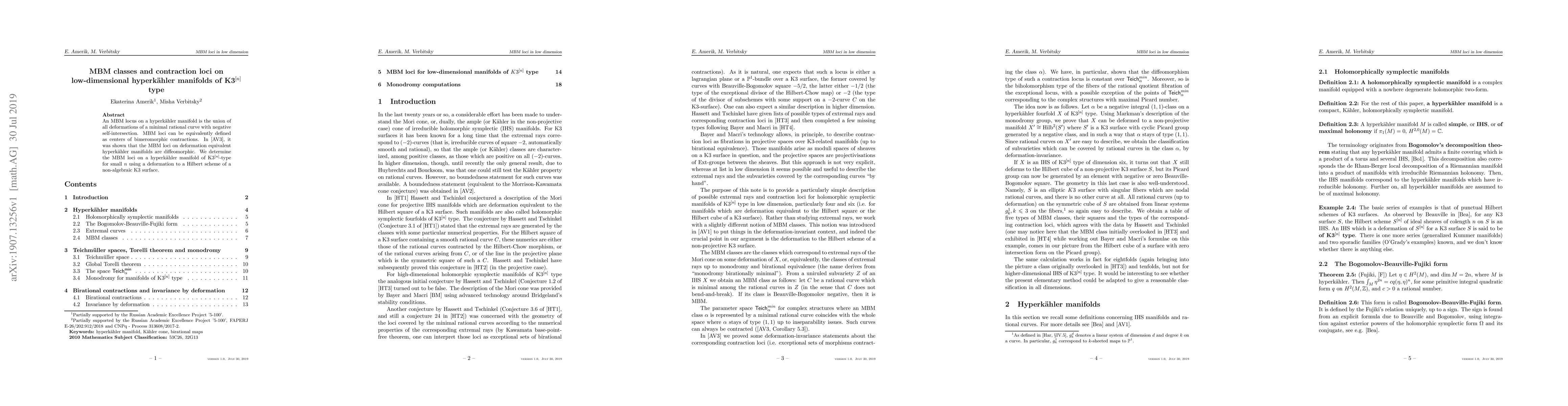 This paper identifies MBM loci on low-dimensional hyperkähler manifolds of K3 type by showing they are centers of bimeromorphic contractions and diffeomorphic across deformation equivalent manifolds. It determines these loci using a deformation to a Hilbert scheme of a non-algebraic K3 surface.
