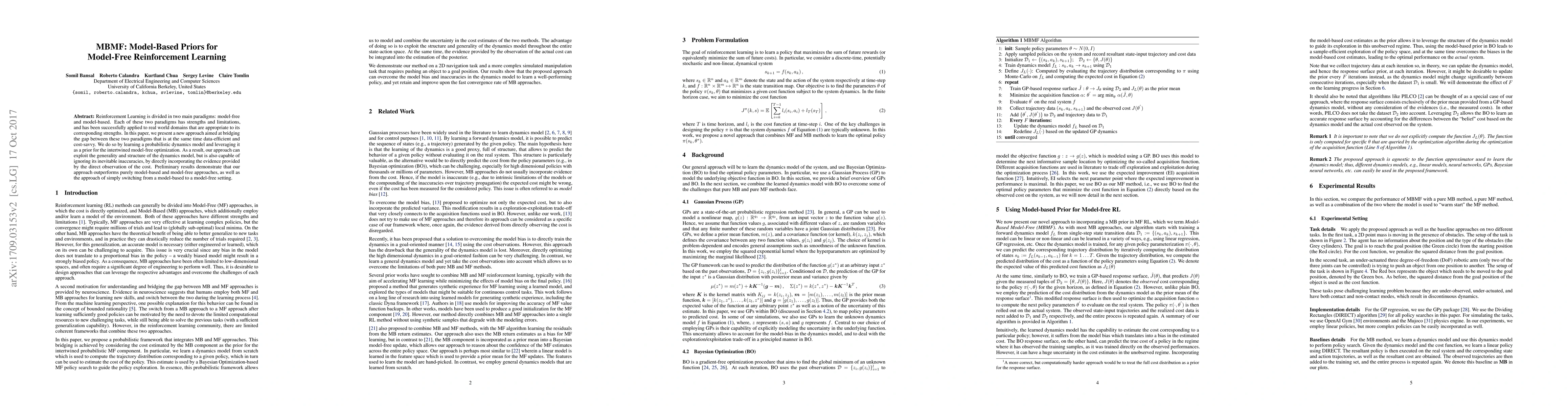 Reinforcement Learning is divided in two main paradigms: model-free and model-based. Each of these two paradigms has strengths and limitations, and has been successfully applied to real world domains that are appropriate to its corresponding strengths. In this paper, we present a new approach aimed at bridging the gap between these two paradigms. We aim to take the best of the two paradigms and combine them in an approach that is at the same time data-efficient and cost-savvy. We do so by learning a probabilistic dynamics model and leveraging it as a prior for the intertwined model-free optimization. As a result, our approach can exploit the generality and structure of the dynamics model, but is also capable of ignoring its inevitable inaccuracies, by directly incorporating the evidence provided by the direct observation of the cost. Preliminary results demonstrate that our approach outperforms purely model-based and model-free approaches, as well as the approach of simply switching from a model-based to a model-free setting.